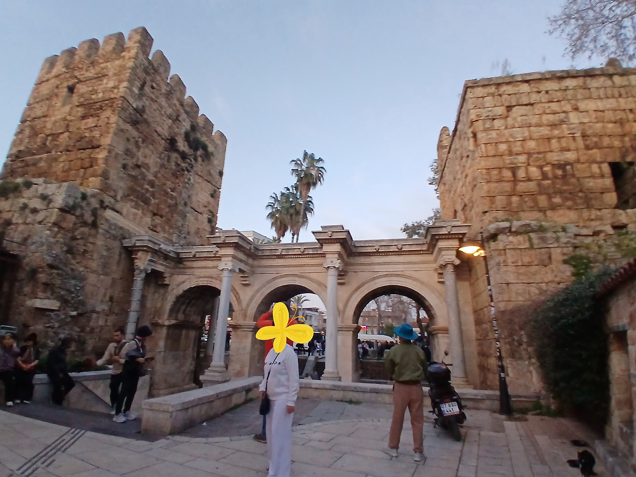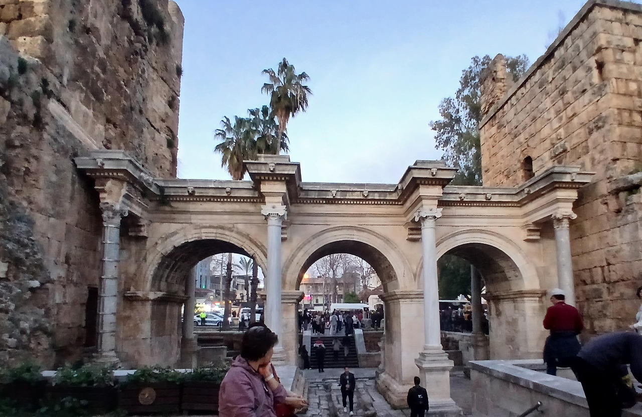 130년 로마황제 하드리아누스가 안탈리아를 방문한 기념으로 건립한 문으로 가운데는 마차가 다니고 양쪽으론 사람들이 다녔고 구시가지로 들어가는 메인 게이트로 사용되고 뛰어난 조각들로 장식되어 있다.