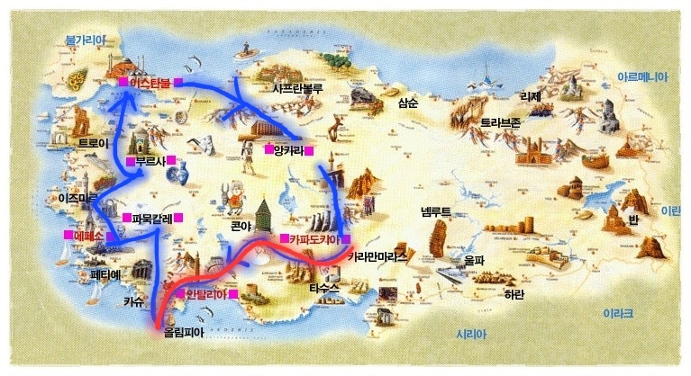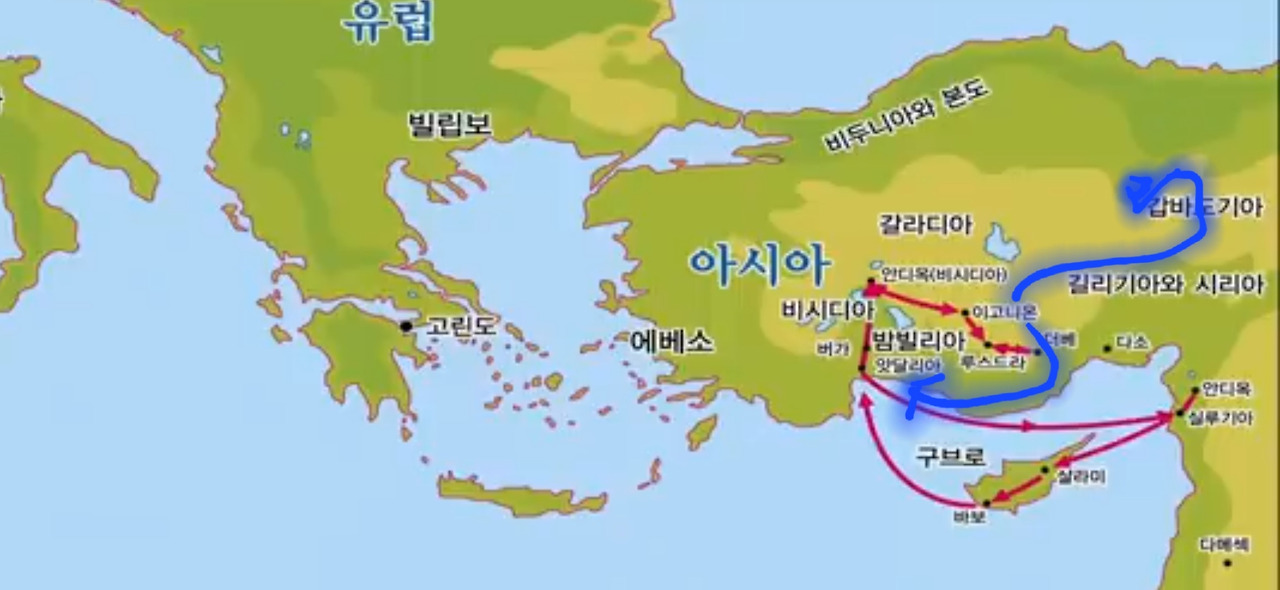 튀르키예 땅이 바울의 전도여행지가 여러 곳이 있어서 지도를 가져와 보았다.