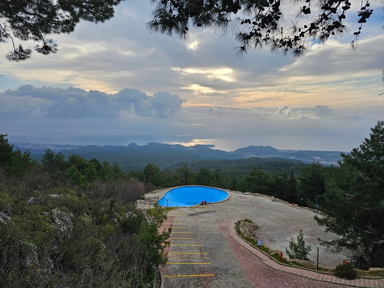 정상에서는 안탈리아 해안과 지중해의 멋진 전경을 감상할 수 있다.