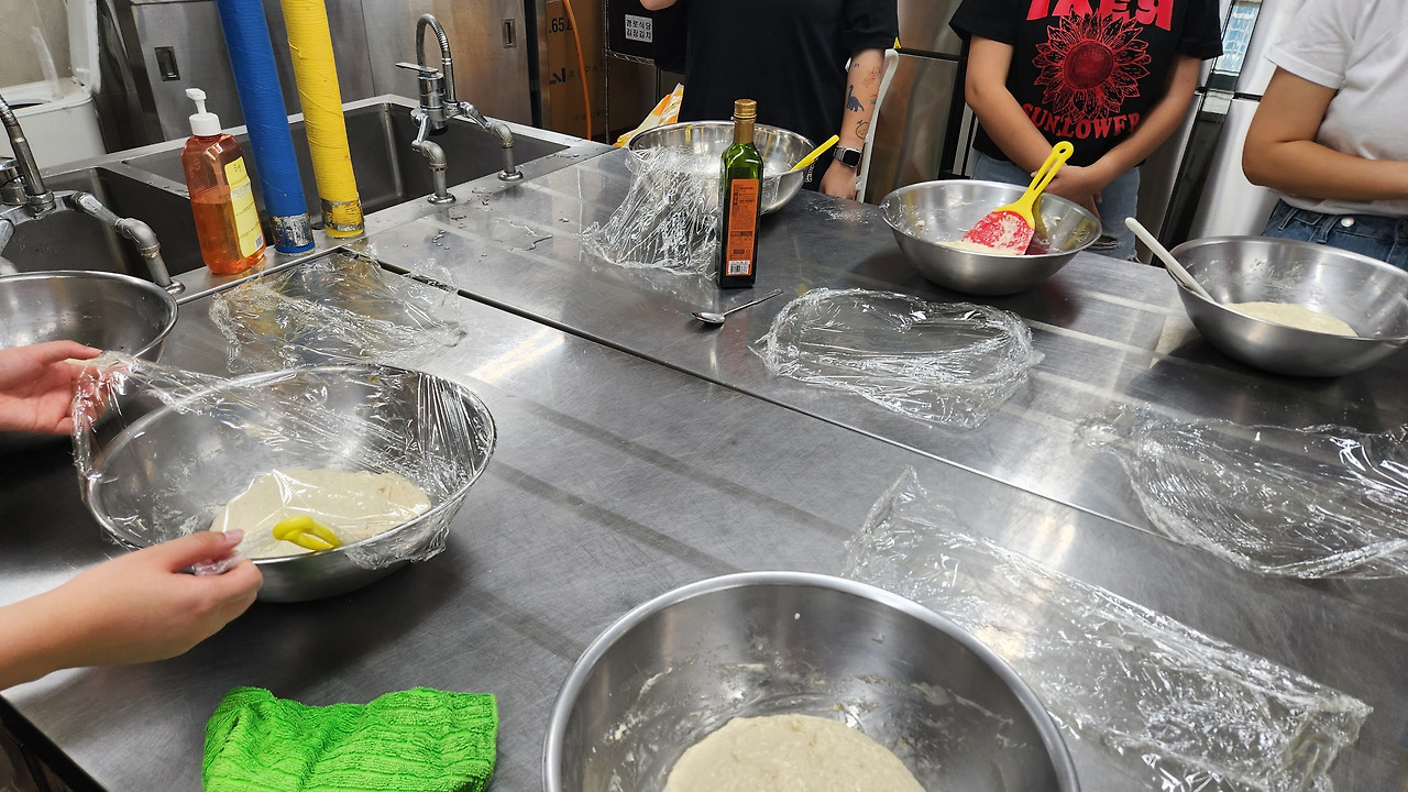 각자 반죽이 담긴 커다란 그릇을 품에 안고 끈적이는 밀가루와 씨름했습니다. 처음으로 누군가를 가르치며 활동하는 다람도, 포카치아를 처음 만들어보는 단원도 새롭고 즐거운 활동이었습니다.