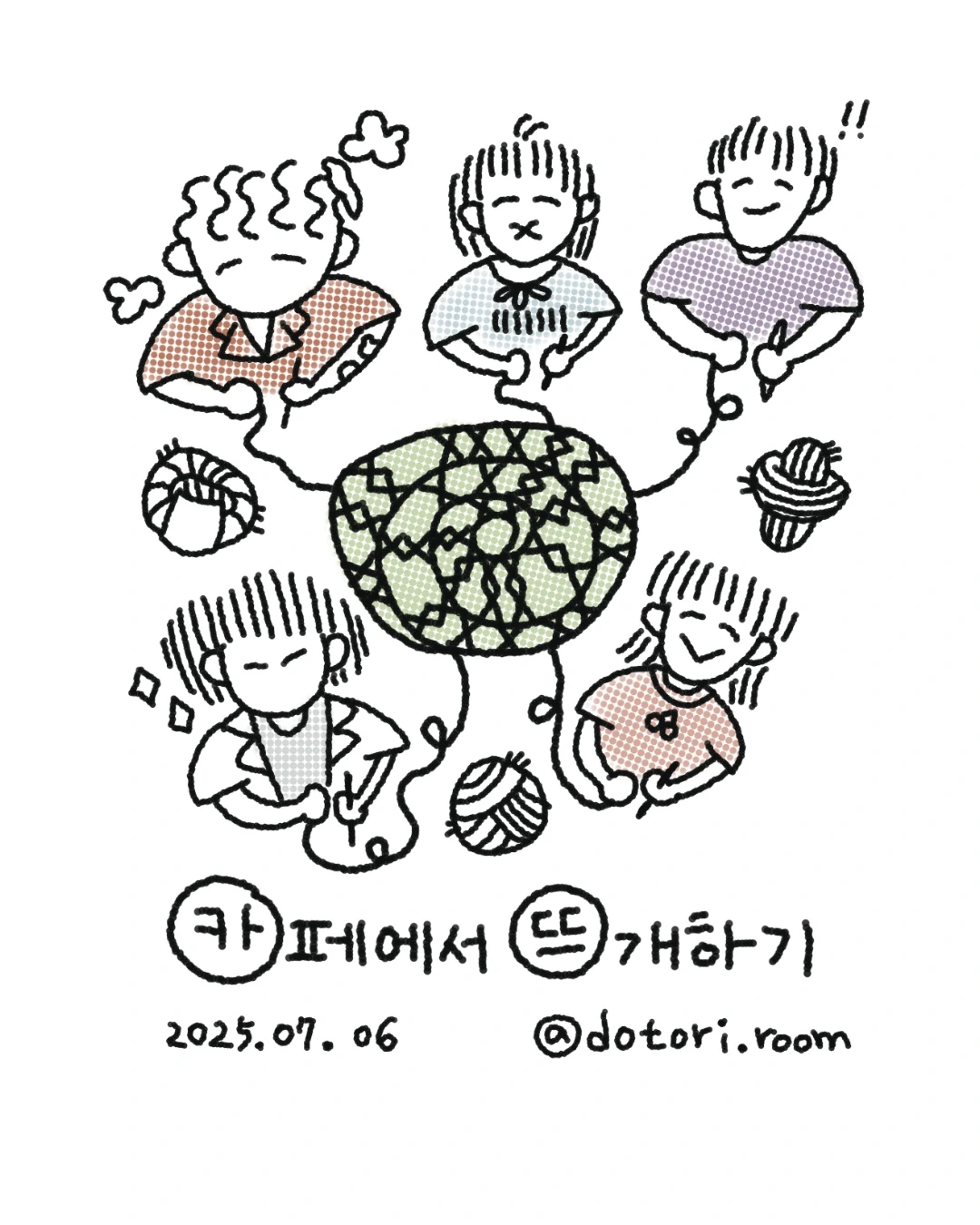 카페에서 뜨개질을 했어요.