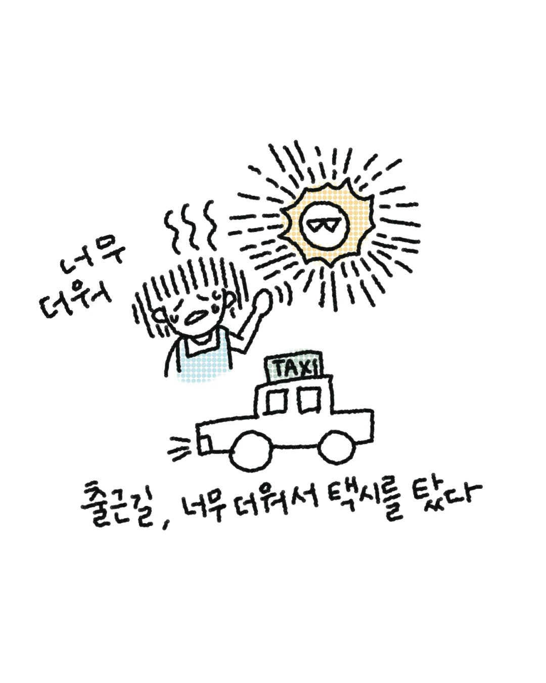 아침부터 너무 뜨겁고 더워서 택시를 탔어요.