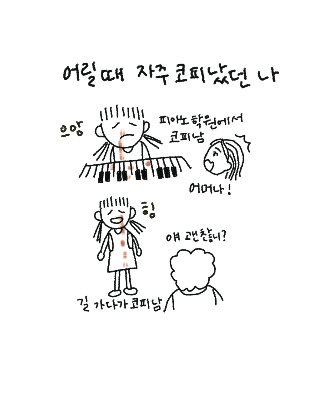 피아노 학원에서 후드득 떨어지는 코피에 선생님을 깜짝 놀라게 하기도 했고