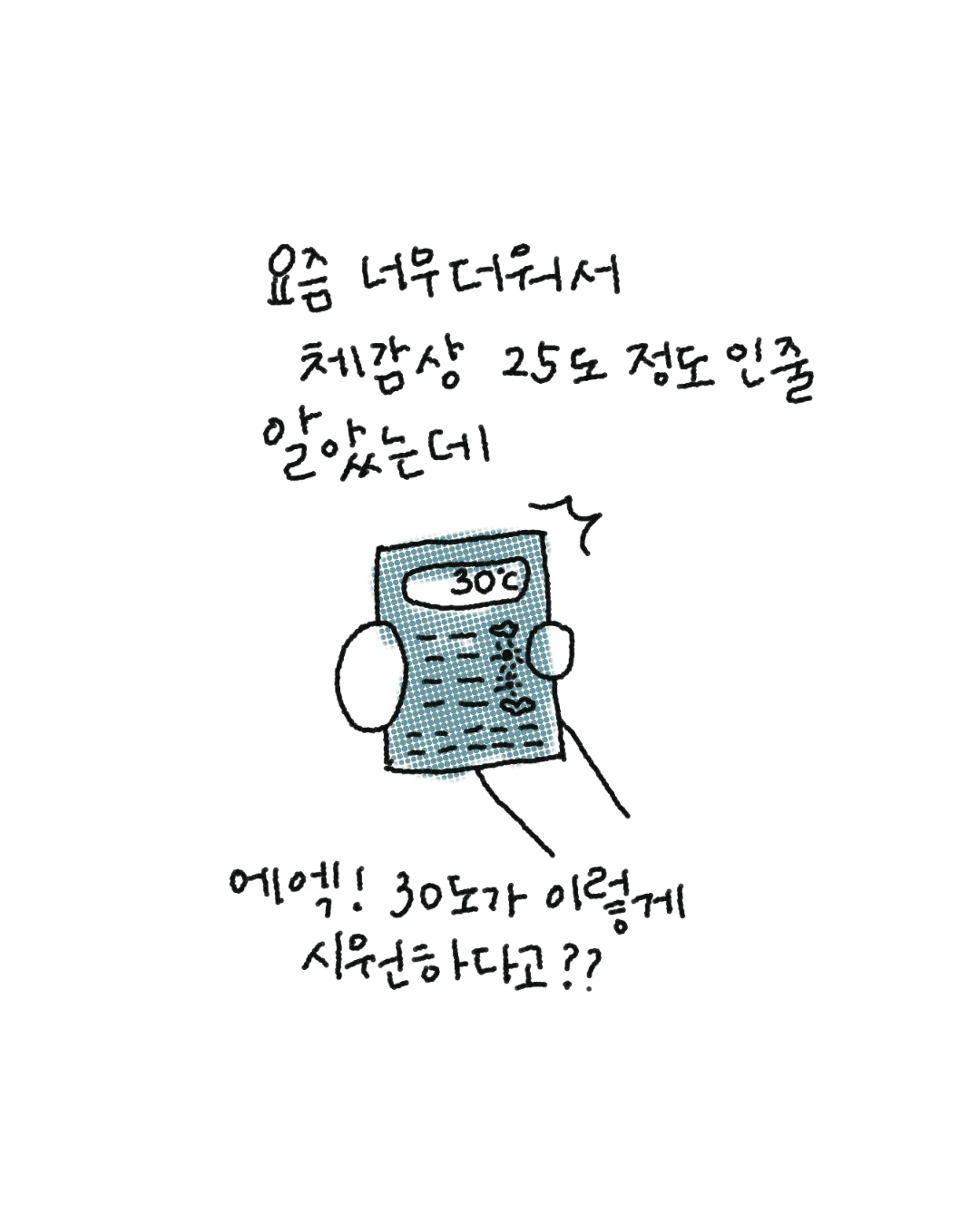 날씨 앱을 열어보니 30도였어요.