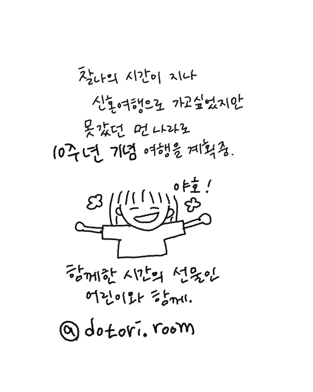 우리는 여전히 서로에게 가장 친한 친구이자 든든한 버팀목이에요. 이런저런 여러 가지 이유로 신혼여행으로 가고 싶었던 호주를 가지 못해 내내 마음에 남아있었는데 10주년을 구실로 큰맘 먹고 떠나보려고 합니다!