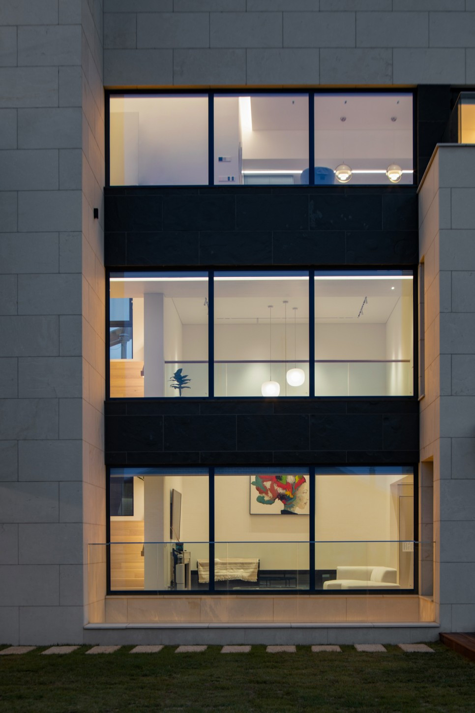 Uncommon은 정교하게 다듬어진 조각품을 보는듯한 우아한 첫인상이 매력적인 인천 영종도의 고급 주택입니다. 묵직한 매스와 규모 있는 볼륨감으로 외관부터 압도적인 이곳은 따로 담장을 설치하지 않고, 건물이 이를 대신하는 대담함을 갖췄습니다. 세대별 라이프스타일에 맞춘 크고 작은 창문들이 Uncommon만의 리듬을 연출합니다. 건물의 입구에서 보이는 차고지 너머의 폴딩도어는 개방 시 녹지의 햇살과 바람을 마주하는 마당 혹은 공원으로 사용될 수 있도록 실용성을 더했습니다. 정갈하게 다듬은 입면은 차분한 밤이 되면 은은한 빛으로 이곳만의 그림자와 함께 깊이와 명함을 더해 세련된 분위기를 조성합니다.