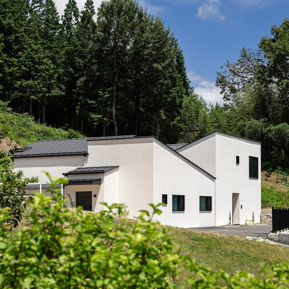 상업 스테이 건축은 일반 전원주택과는 또 다른 숙제에 놓입니다. 상업시설답게 명확한 컨셉과 디자인, 투숙객이 편안하게 머물 수 있는 프라이빗 한 공간을 요구하는 '숙소동'과 고객 서비스 제공 시 개인 영역을 침해하지 않는 편리한 서비스 동선이 중요한 ‘관리동’. 이러한 복합적인 요소를 조율하기 위해서 건축에 알맞은 환경이 준비되어 있다면 가장 좋겠지만, 그렇지 않은 경우가 대부분입니다. 스테이 ‘산월(山月)’은 이름처럼 숲속의 달빛이 은은하게 내려오는 대나무 숲이 잔잔히 펼쳐진 풍경 속, 동쪽을 바라보는 지형적 단점을 가진 프로젝트였습니다.