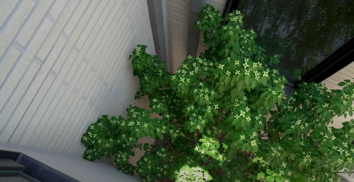 윤환(輪環)에서 계단과 중정은 집의 중심을 이루는 코어 역할을 합니다. 1층과 2층의 계단을 오르내릴 때마다 시야에 들어오는 이 중정은, 미묘한 계절의 변화나 빛의 흐름을 하나의 장면으로 담아냅니다. 매일 반복되는 익숙한 동선 속에서 자연은 매일 새로운 풍경을 보여주며, 일상을 더욱 풍요롭게 만드는 건축적 장치가 됩니다.