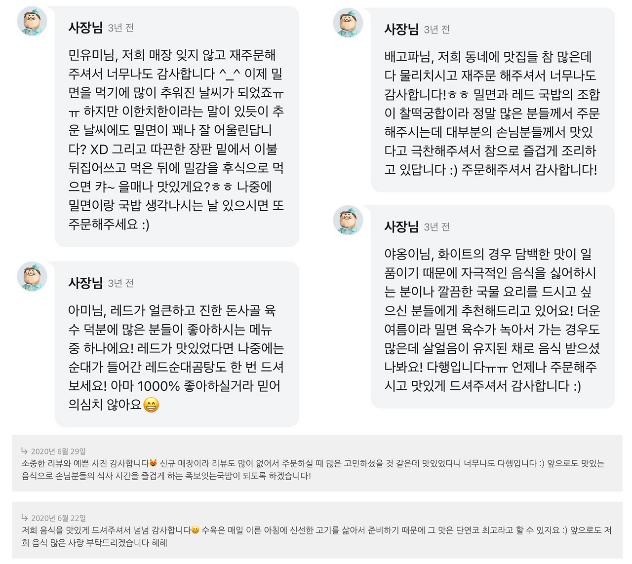 배달 전문점에서의 리뷰는 마케팅 중요 포인트이긴 하지만, 블랙컨슈머들 때문에 부정적으로 이용되는 경우도 다분하다. 하지만 현명하게 대처한다면 99%의 정상적인 손님들은 진심을 알아봐 줄 것이다. 사장님들 오늘도 화이팅이다!