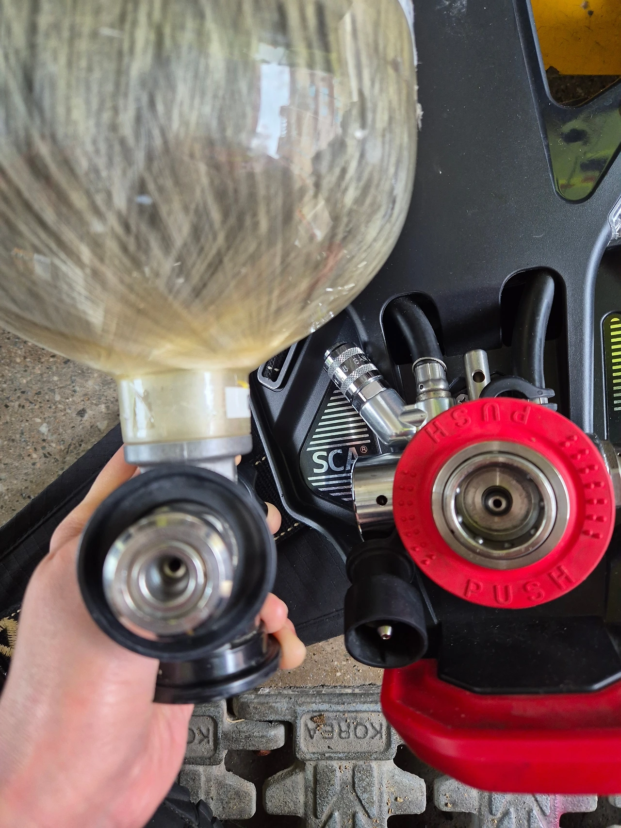 특히 공기호흡기를 등지게 결착할때 돌리는 밸브만 쓰다가 딸깍하고 똑딱단추처럼 한번에 버튼으로 눌러 결착되는게 놀라웠다.