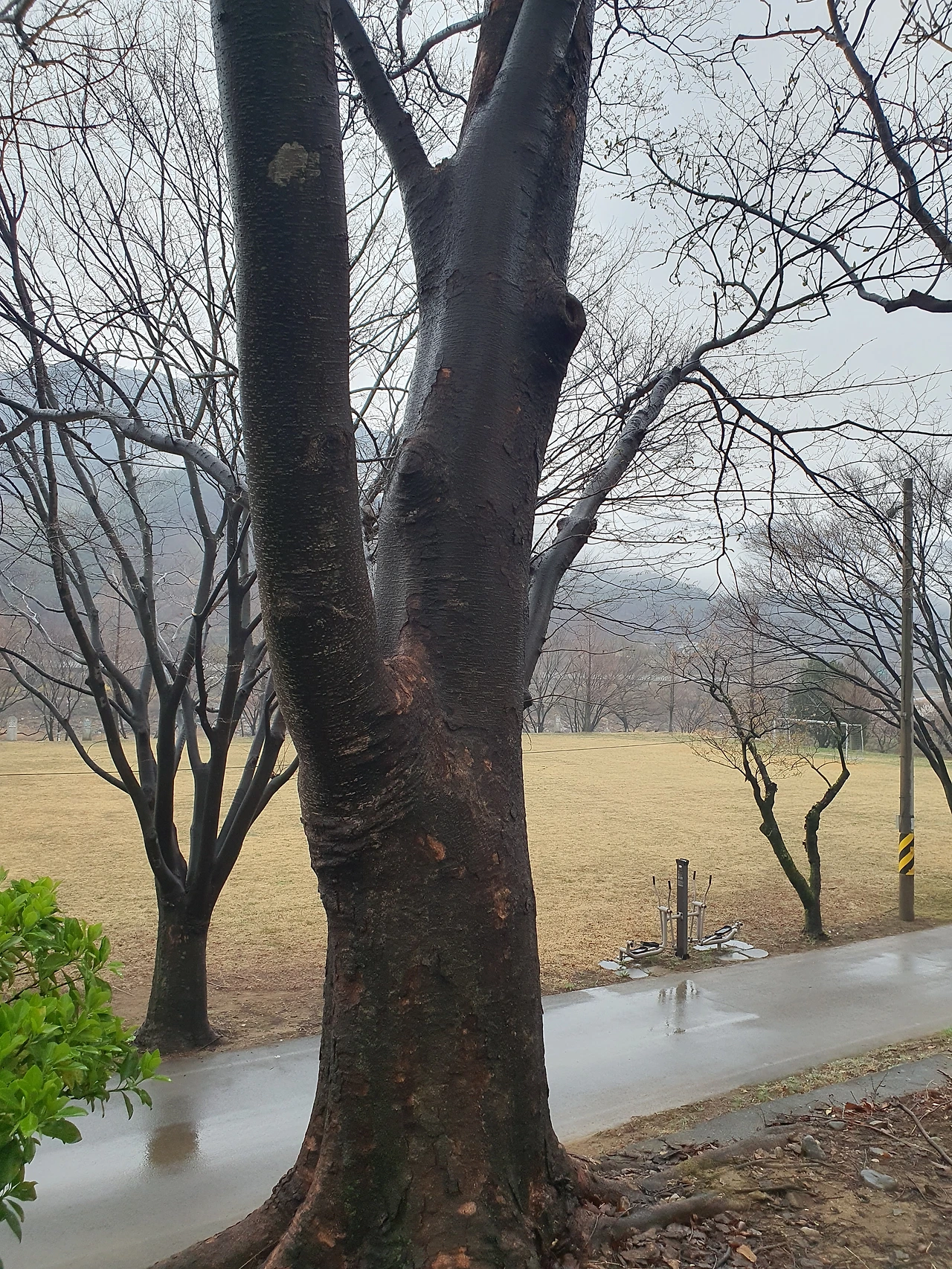 일부러 비를 맞는 사람은 없다지만 느티나무는 오롯이 젖어 미끈한 허리를 뽐내고 있지요.