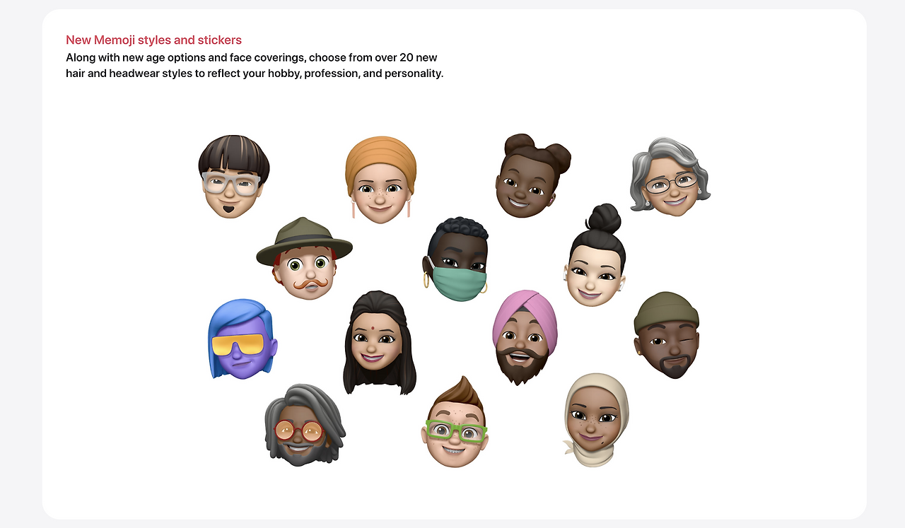 굉장히 뜨거운 반응을 보였었던 애플의 뉴 스큐어모피즘 이모티콘인 미모지가 더욱더 다양한 기능들로 업데이트되었습니다. 미모지가 업데이트되면서 그룹 메시지 등 메시지 앱이 더욱 강력해졌습니다. 개인적으로 미모지를 굉장히 좋아해서 iOS14가 출시되면 바로 먼저 해볼 것 같은 기능 중 하나입니다.