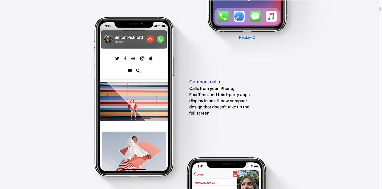 이제 영상을 시청하시다가 영상을 종료하지 않고 문자나 웹서핑 등 다양한 업무를 할 수 있게 되었습니다. 또한 전화가 오면 전체 화면으로 바뀌던 이전 iOS와 달리 이제는 상단의 알림 창으로 전화가 뜨며 Siri의 기능은 더욱 강화되고 시리 화면 또한 전화 알림과 같이 하단의 시리 심볼이 나타나는 형태로 변화하였습니다.
