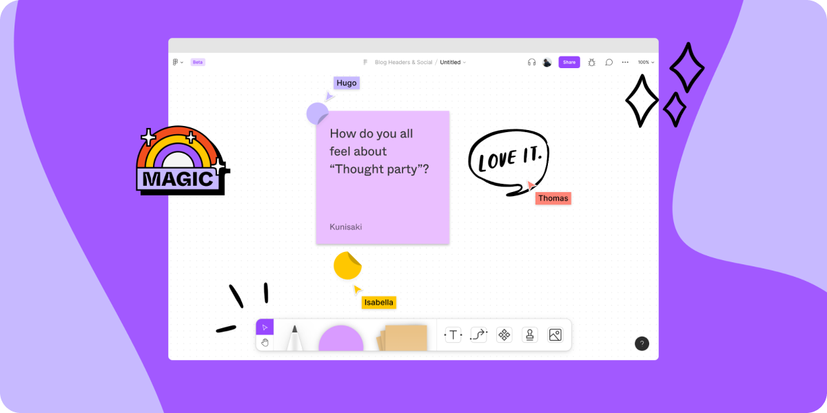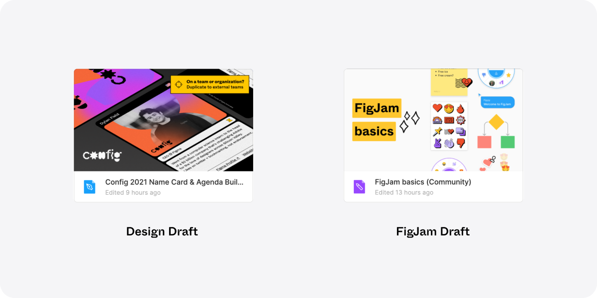 FigJam은 별도의 플랫폼 서비스가 아닌 피그마라는 플랫폼 안에 기존과 동일한 디자인 전용 Draft와 FigJam Draft가 존재하도록 하며 위의 이미지와 같이 아이콘으로 구분하여서 피그마라는 플랫폼에서 이탈하지 않도록 만들었습니다.