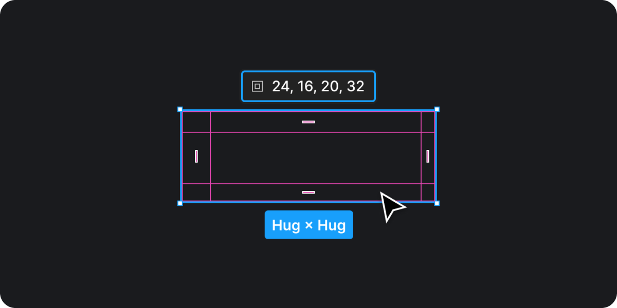 이제는 위의 이미지처럼 Frame에 Auto Layout 영역이 표시되어 커서를 활용하여서 직접 수정이 가능합니다. 또한 패널에서 Fixed, Filled Contents, Hug 콘텐츠 설정 부분이 상단에 Position Pannel로 이동하였습니다.
