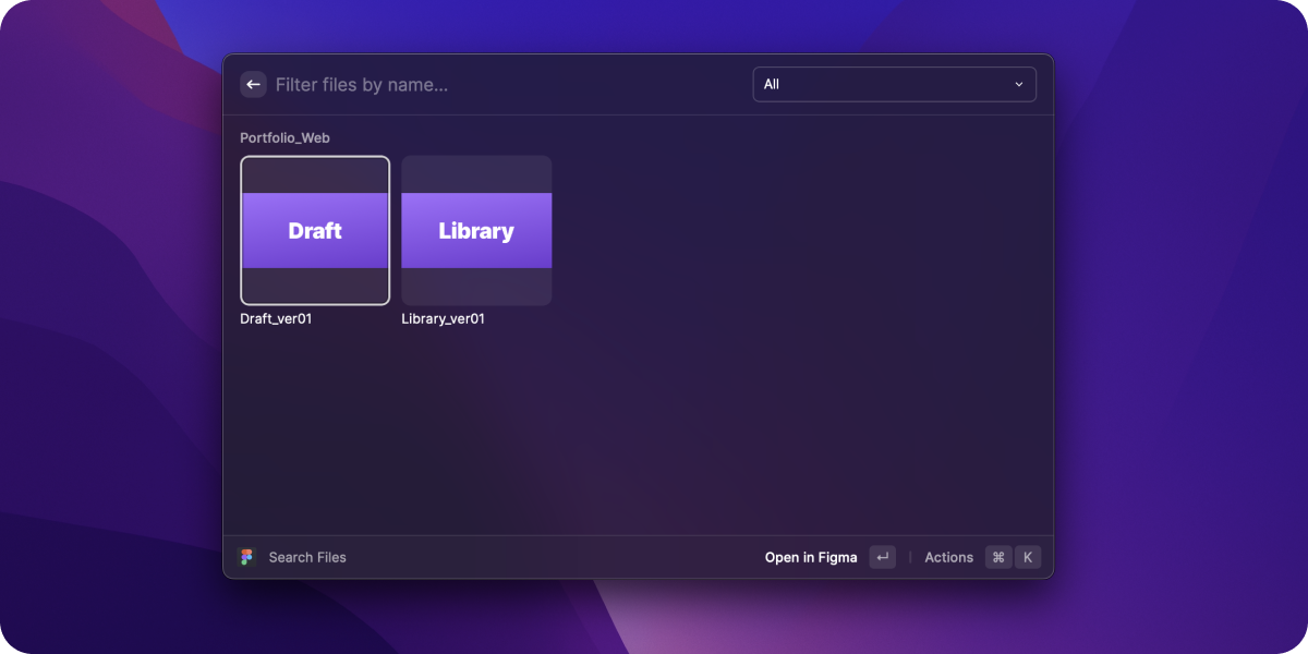 이제 Raycast에서 figma를 입력하고 Search Files (figma)를 선택하면 아래와 같이 피그마를 접속하지 않아도 피그마 내의 파일 리스트가 노출되고 클릭 시 해당 파일로 바로 실행할 수 있습니다.
