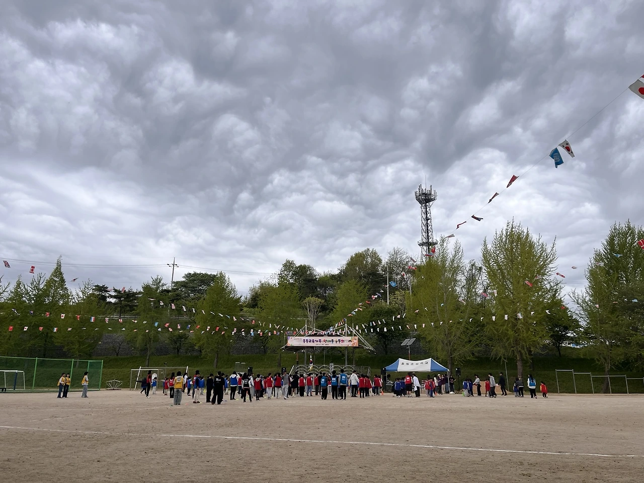 우왕좌왕하는 것은 나뿐만이 아니었다. 급하게 모여든 양육자들, 아이들과 선생님 모두 오락가락하는 날씨로 운동장과 그늘막을 오가며 바쁘게 움직였다. 우여곡절 끝에 시작된 운동회였건만 결국 달리기만 하다 허무하게 운동회가 끝나 버렸다. 도중에 비가 쏟아진 것이다. 이걸 다행이라고 해야 하나 불행이라고 해야 하나. 그래도 운동회의 하이라이트인 계주를 먼저 한 것만큼은 정말 다행이었다.