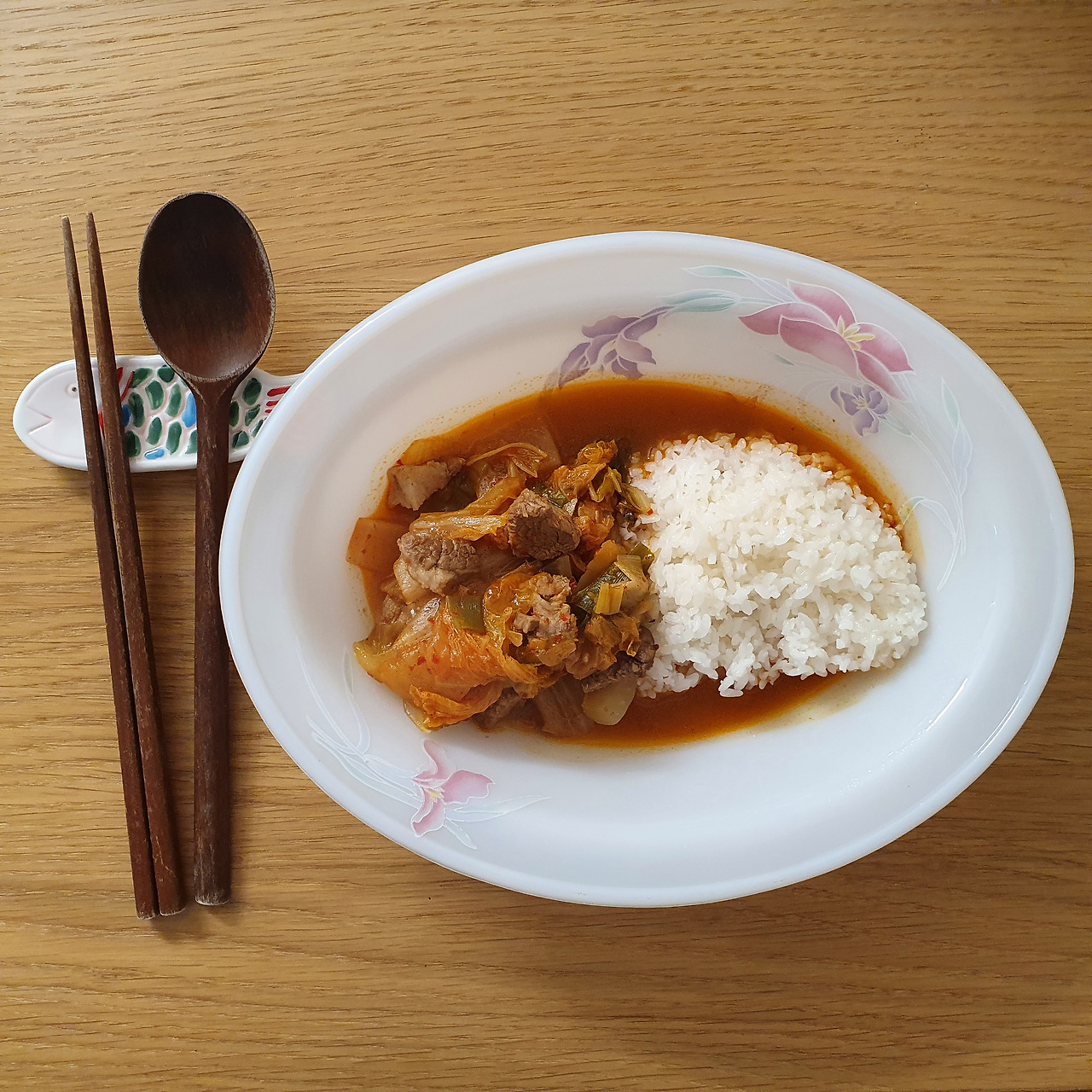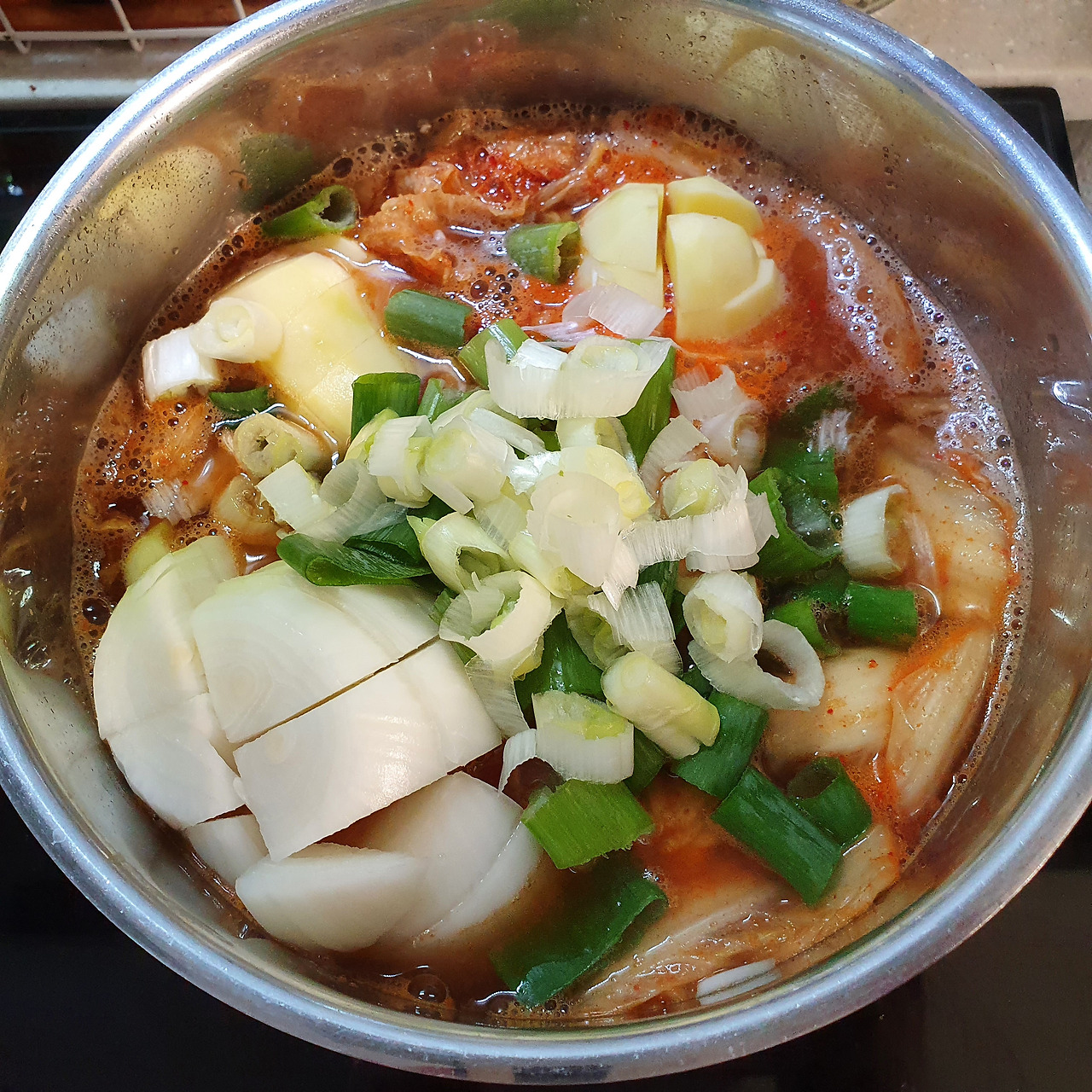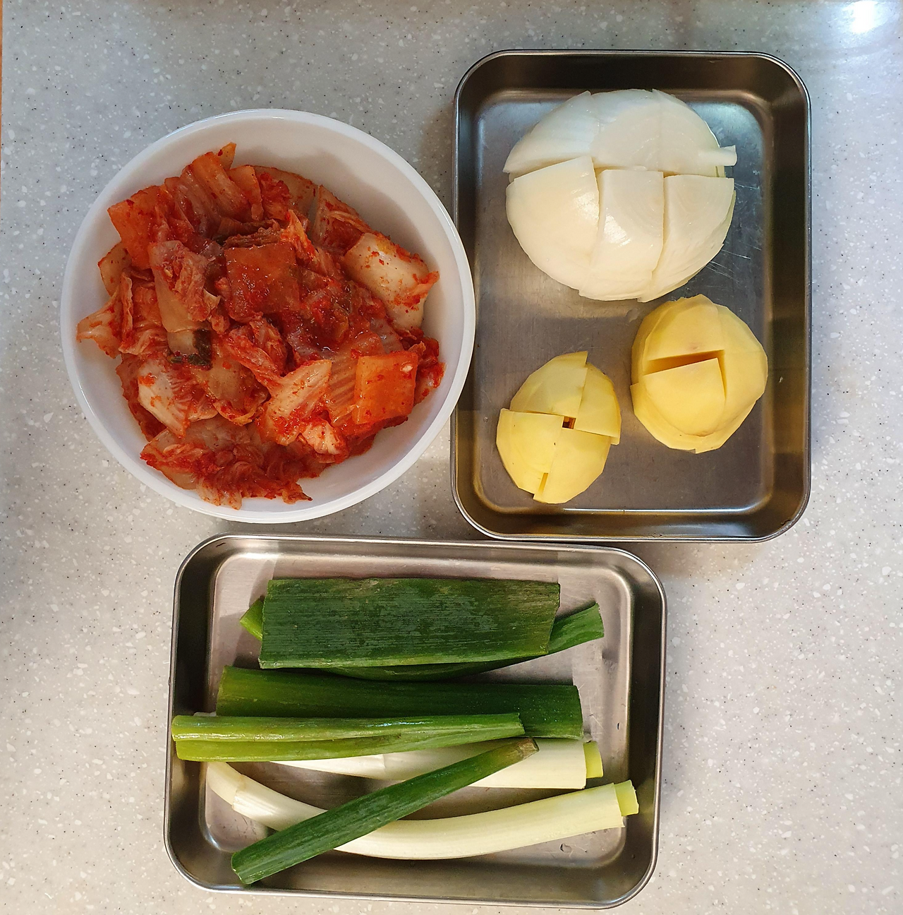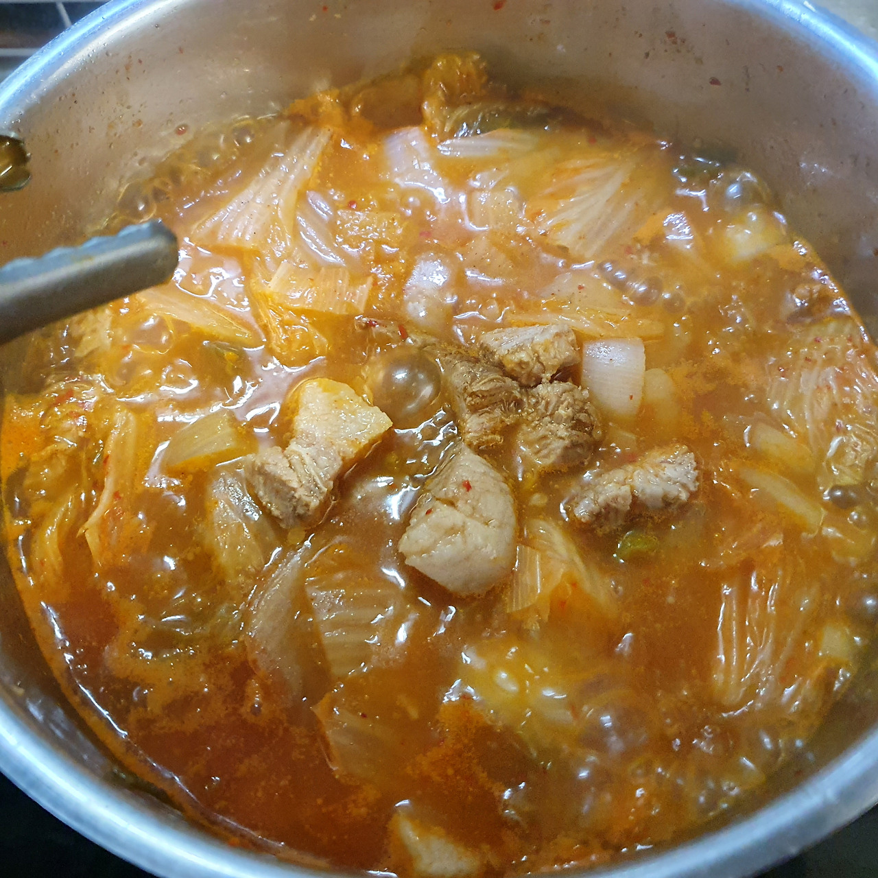 갑자기 김치찜이 생각났다. 김치찌개도 아니고 자작한 국물의 돼지고기 김치찜을 해주고 싶었다. 아내에게 의사를 물어보니 아내도 OK!. 집에 양파와 파, 마늘이 남아있는 것을 알고 있었기에 집 앞 마트에 들러 목살과 김치 한 팩을 샀다.