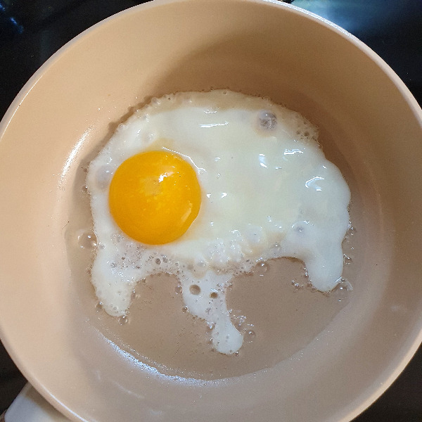 2) 카레와 어울릴 계란 프라이를 만든다. 아내는 소금 간을 하고 약간의 반숙을 좋아하고 나는 소금 간 없이 완숙을 좋아하니 두 가지 방식으로 조리한다.