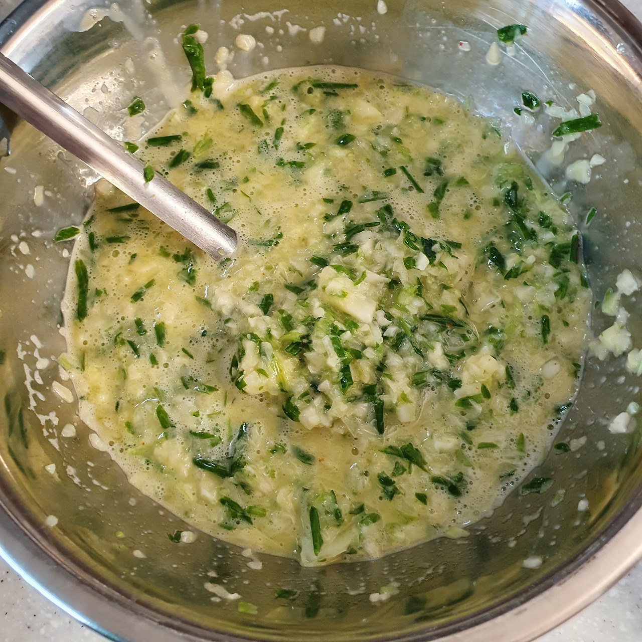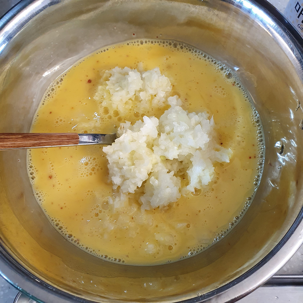 8) 2차로 앞서 만들어두었던 계란물에 다진 쪽파를 추가한다.