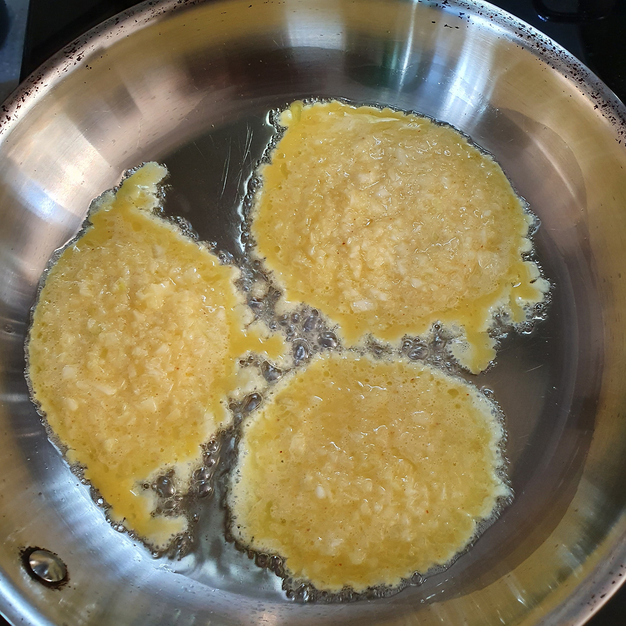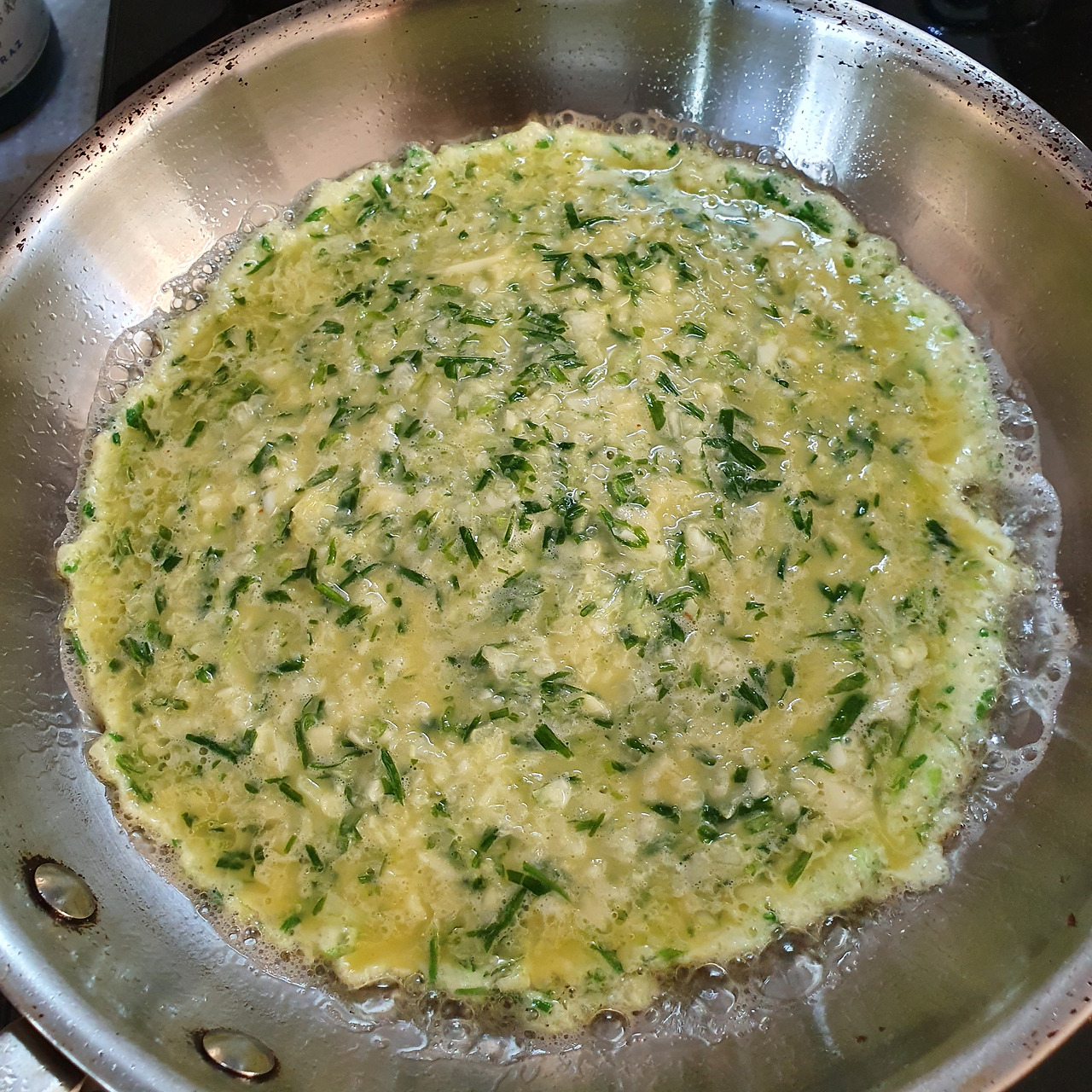 - 아래 사진은... 욕심내서 크게 한 장으로 구우려다가... 뒤집기에 실패하고 다 부스러졌다. 부스러진 사진은 경황이 없어 찍지도 못했다 ㅋㅋ