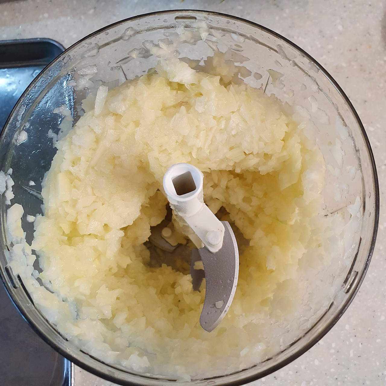 1) 감자와 양파를 다지기 적당한 크기로 자른다.