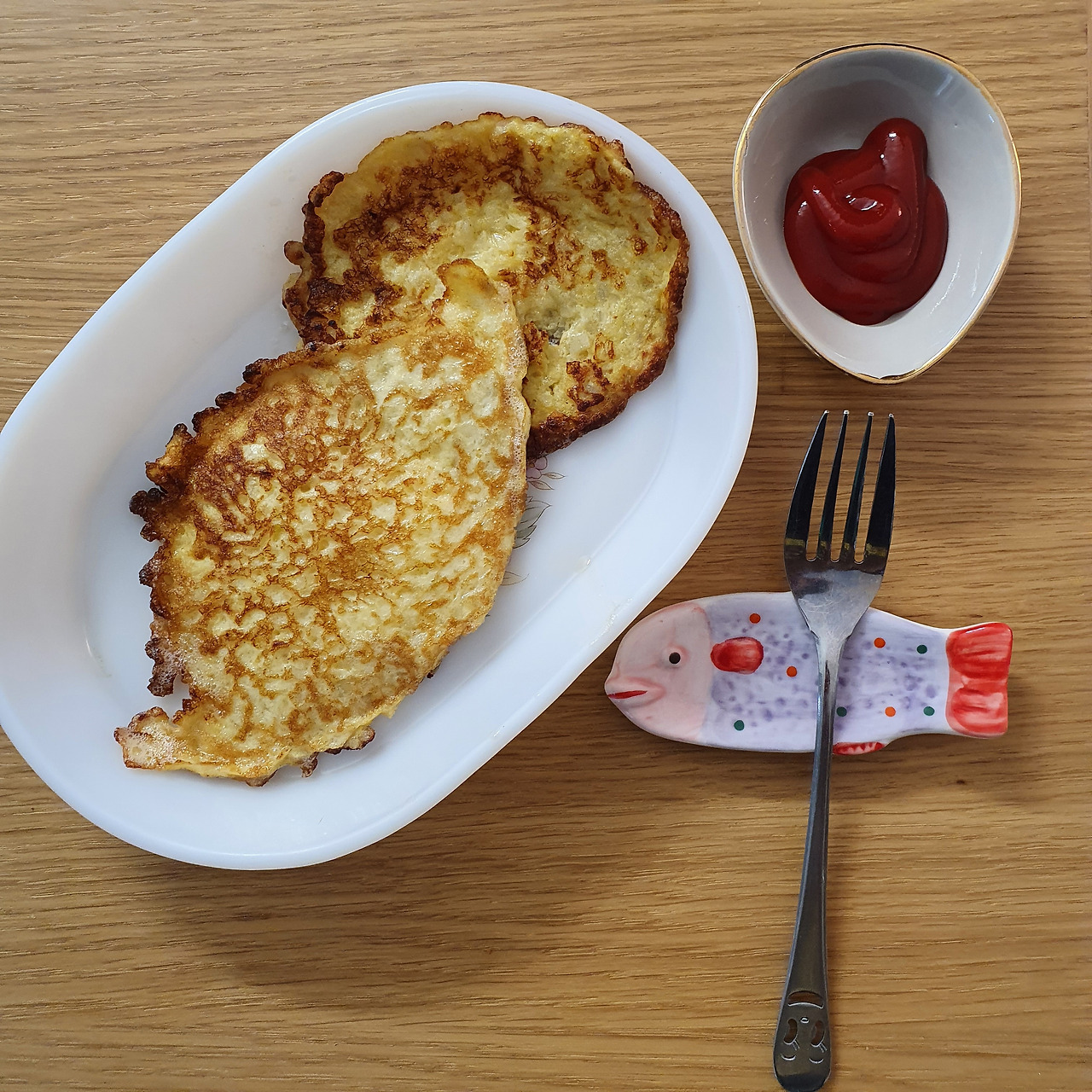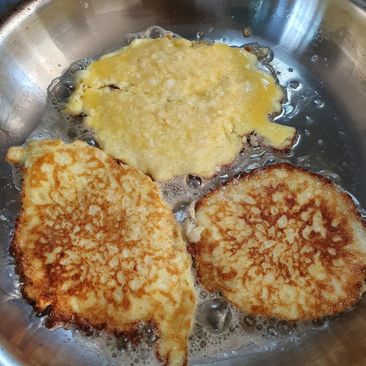 7-1) 1차로 아이가 먹기 위한 감자 부침개를 만든다.