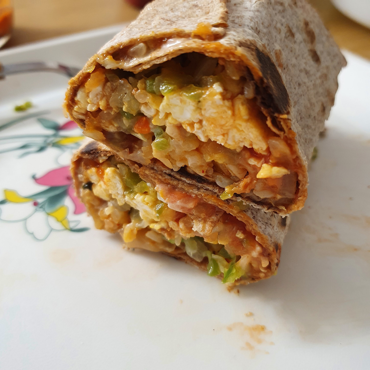 11) 브리또 재료 준비 완료! 이제 먹고 싶은 방법으로 맛있게 또띠아에 준비한 재료를 넣어서 먹으면 된다.