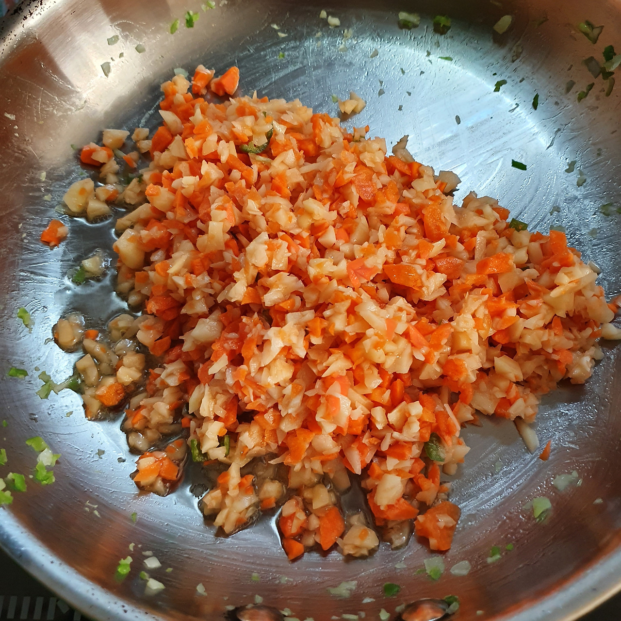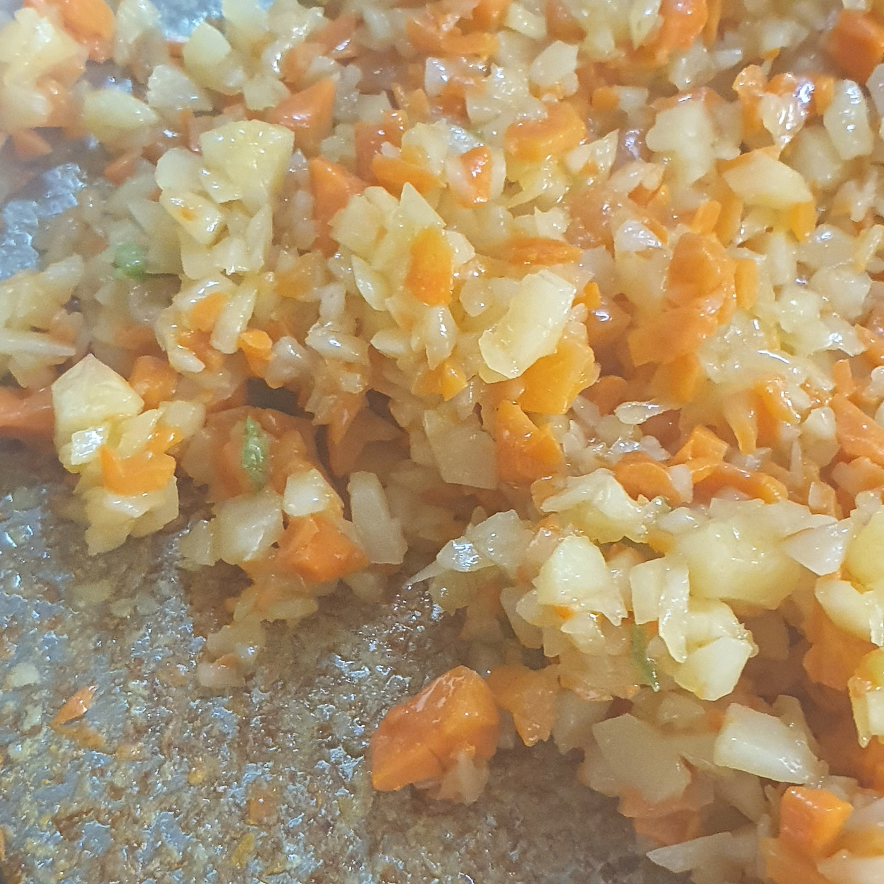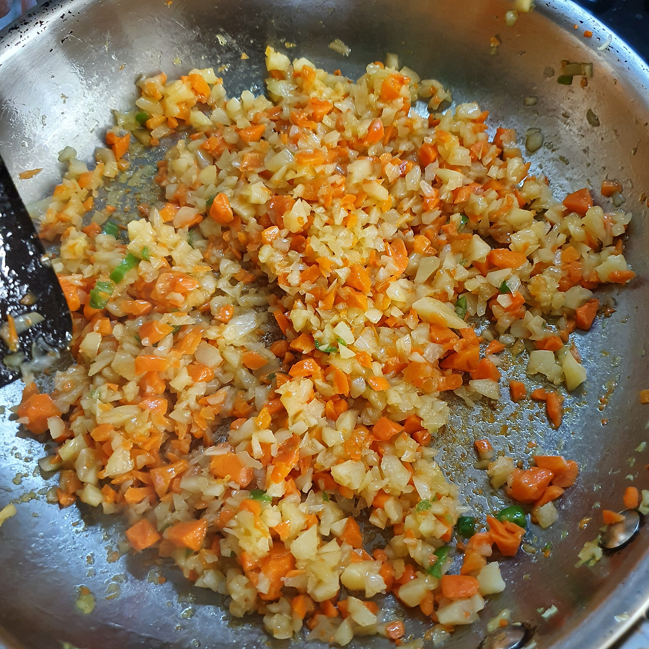 5) 기름을 조금 더 두르고 감자와 당근을 잘 볶는다. 감자와 당근은 잘 익어야 하기 때문에 골고루 잘 볶아준다.