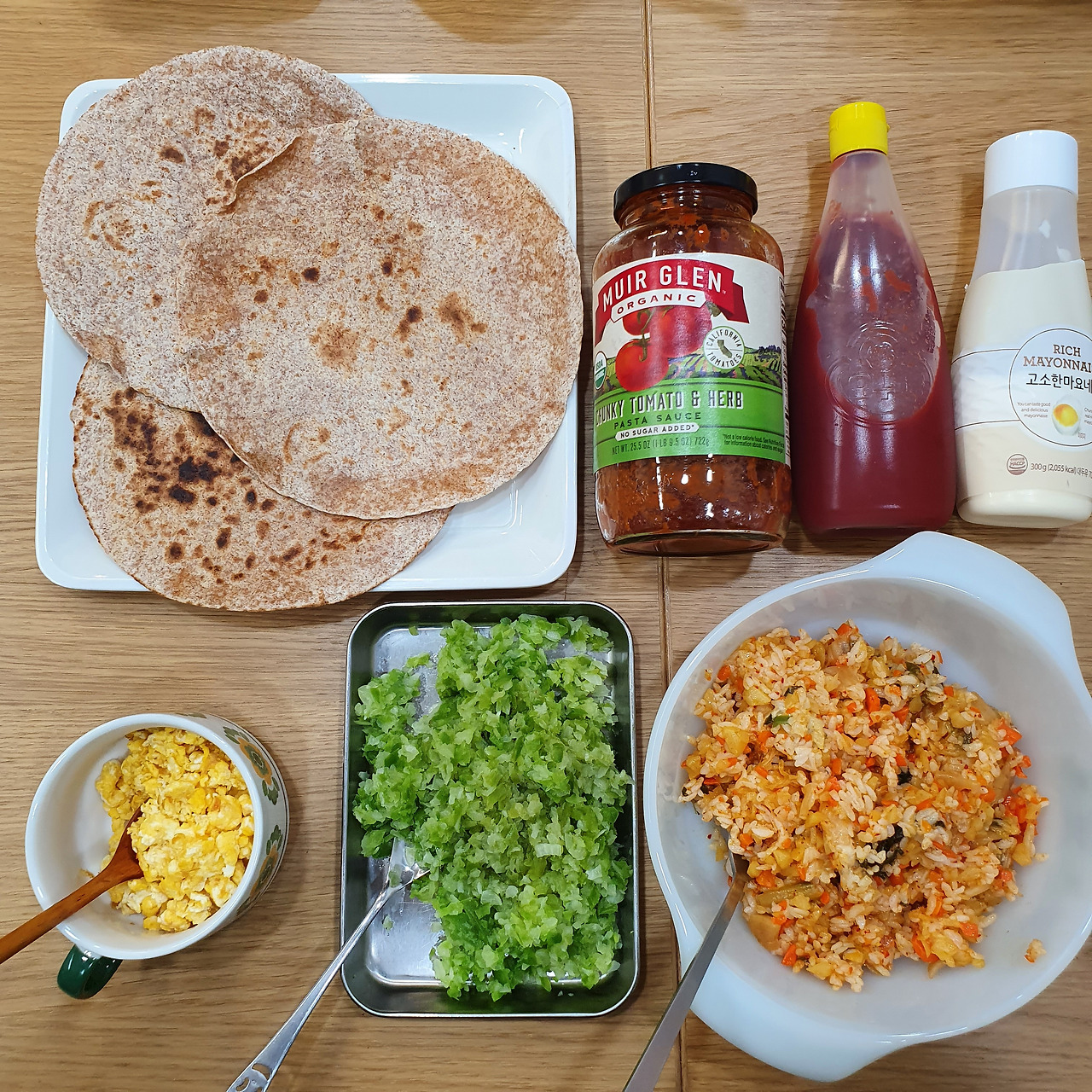 - 준비할 재료들이 조금 많긴 했지만 냉장고를 열 때마다 눈에 밟혔던 또띠아를 먹어치워서 기뻤다.