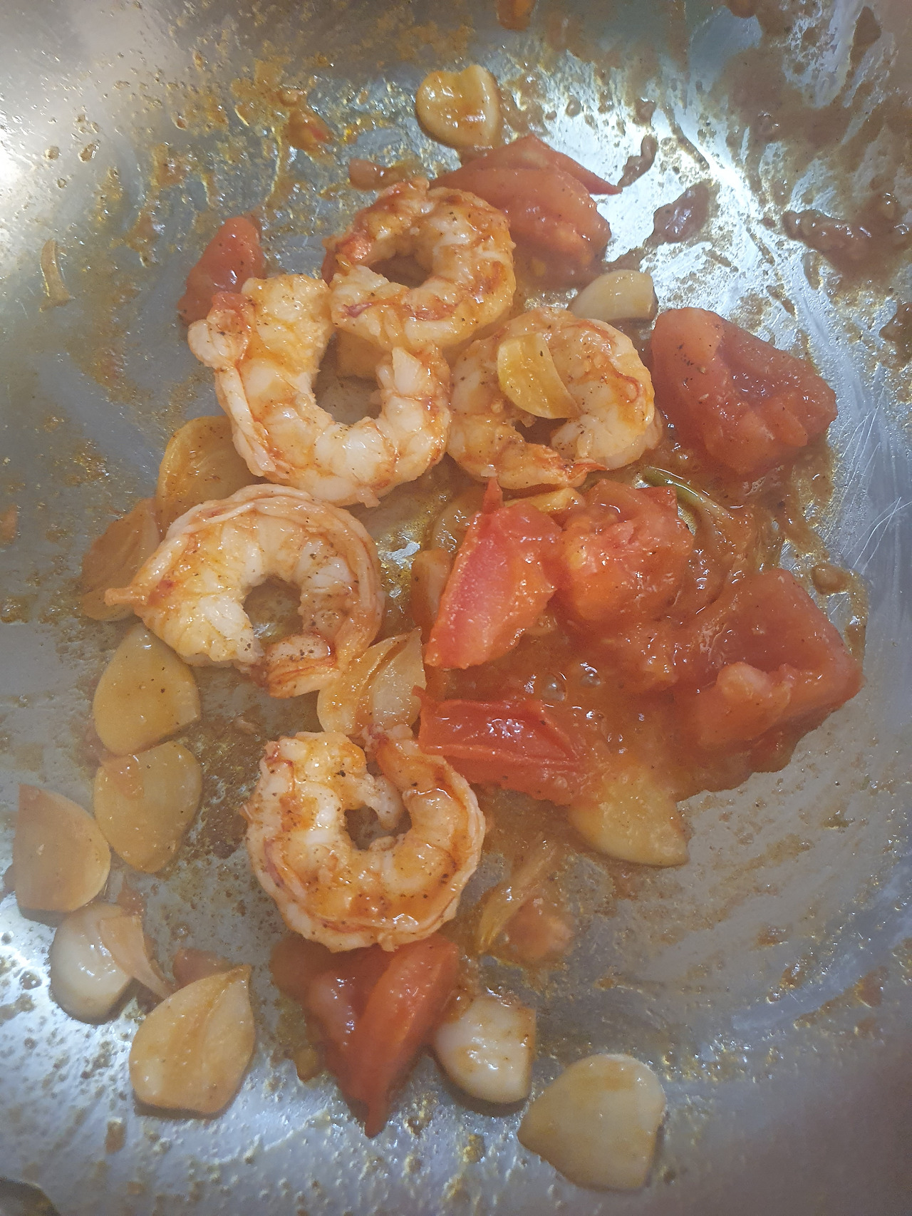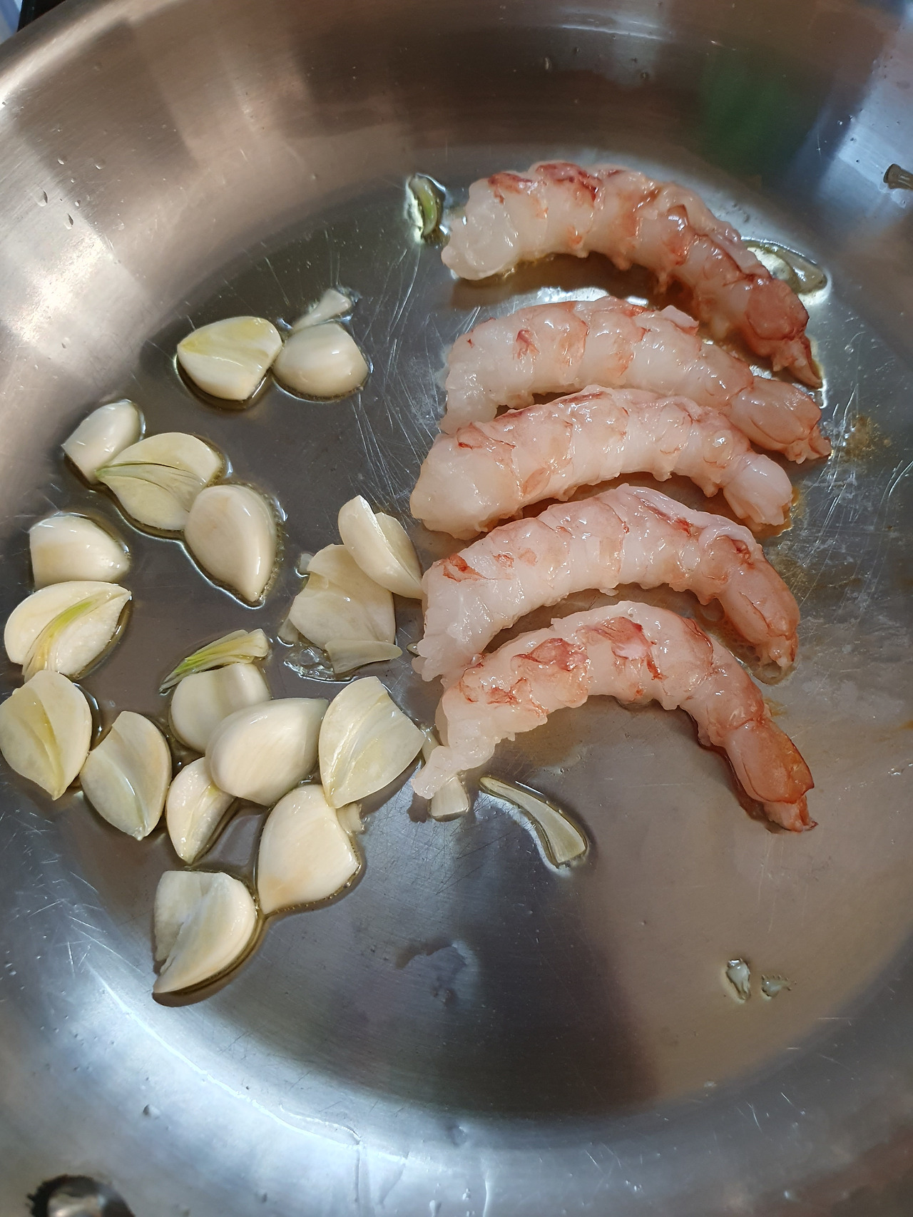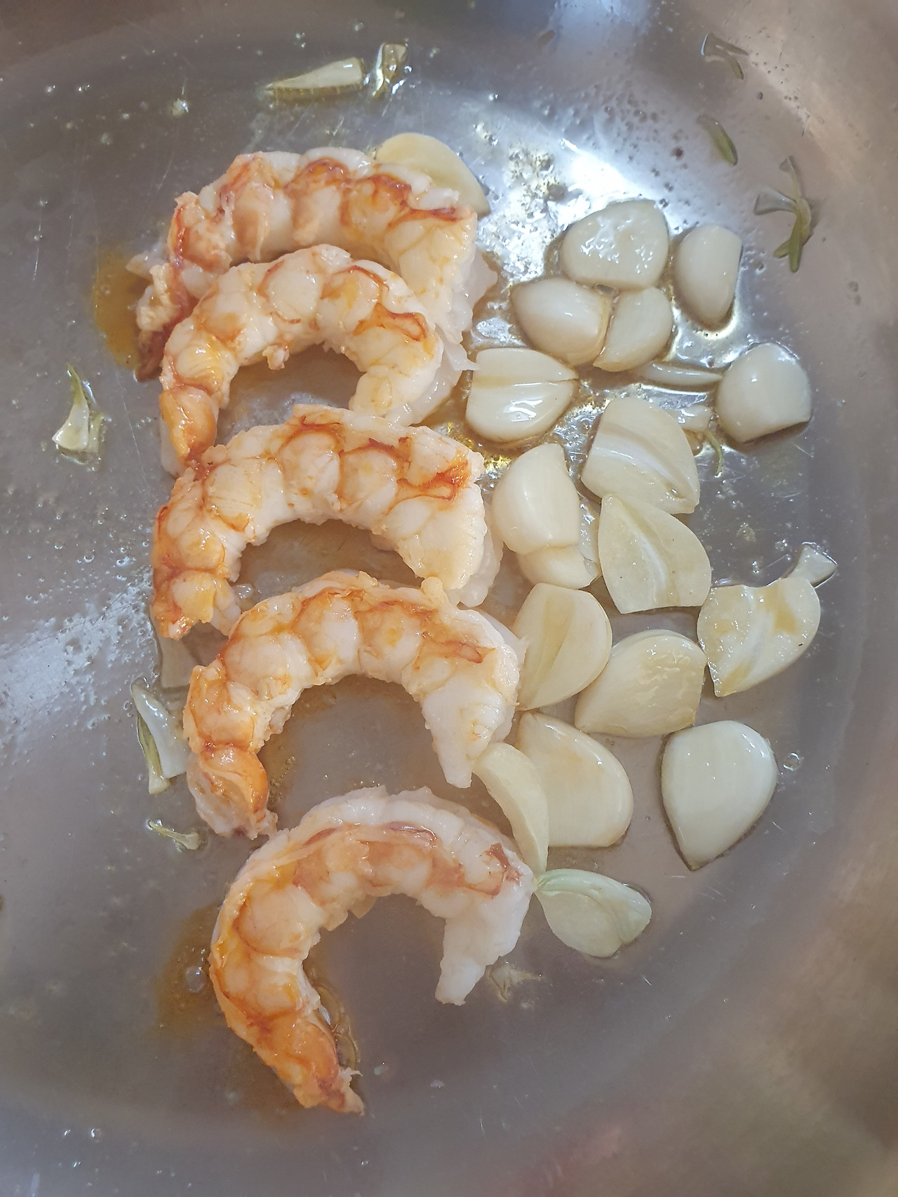 4) 마늘과 새우가 노릇노릇해질 때까지 중불에서 잘 구워준다.