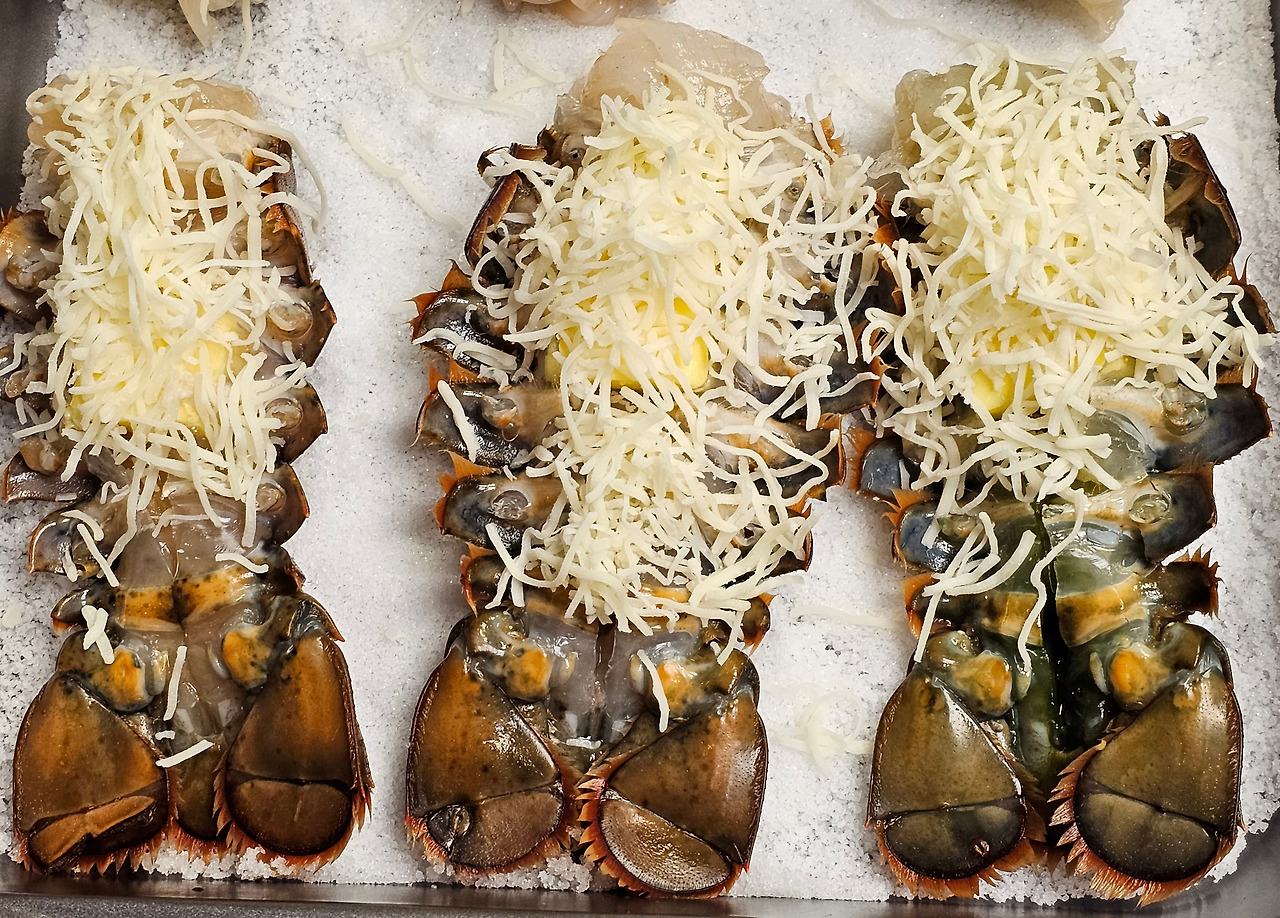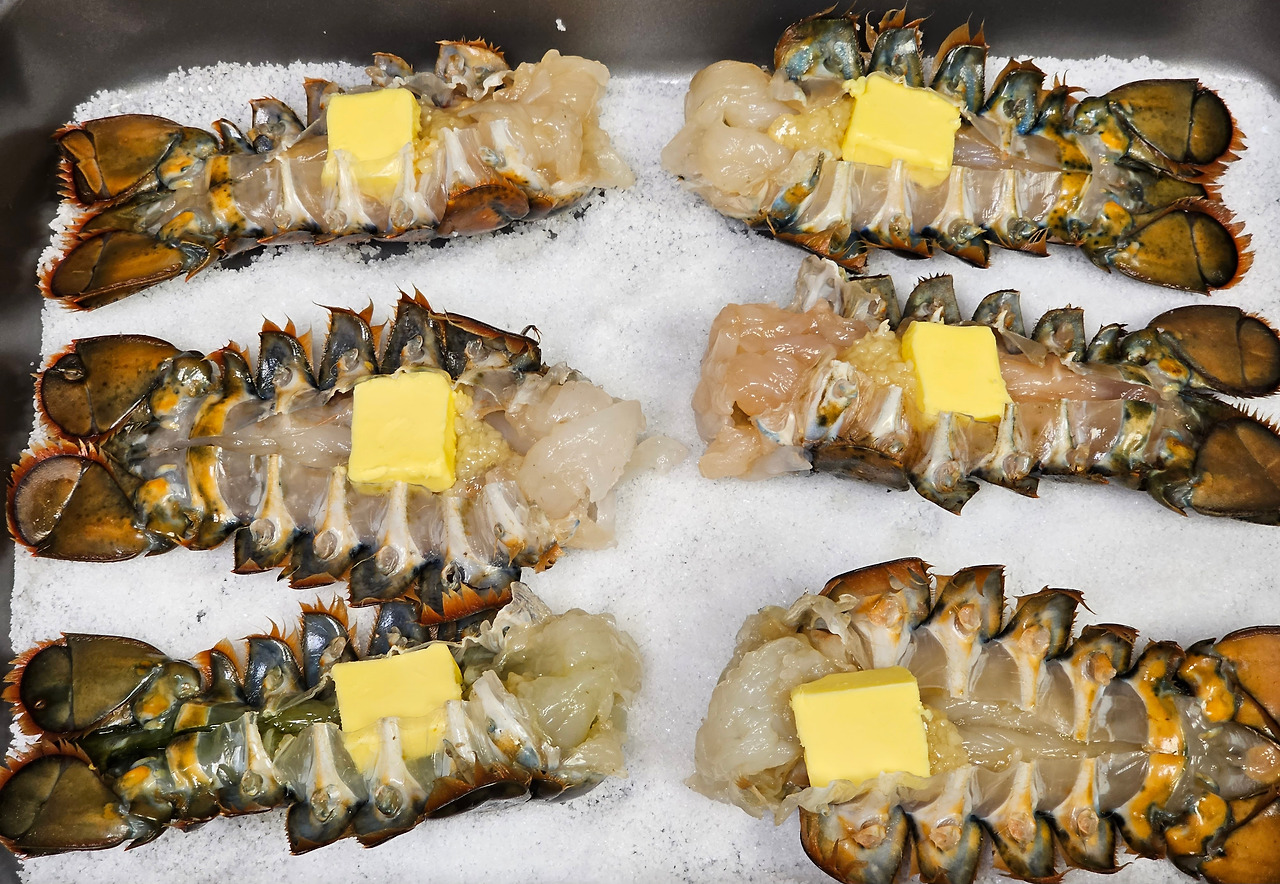 4) 랍스터가 오븐에서 양념과 함께 잘 구워지도록 손질을 해주어야 한다.