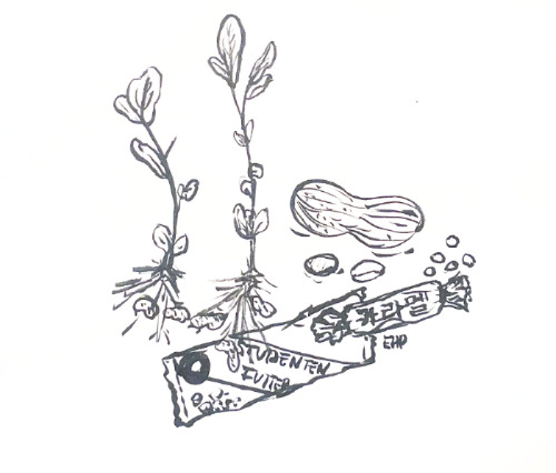 그래도 역시 땅콩이다. 나는 그런 부르주아 학생모이가 아니라 꼭 제일 싼, 땅콩이 거의 대부분인 진짜 학생모이를 부탁한다. 땅,콩. 발음만 해도 좋고 모이처럼 먹으면 더 기분이 좋다. 땅콩 버터나 캐러멜, 쿠키도 모두 좋지만 결국, 중요한 건 땅, 과 콩, 의 총총한 맛이다. 콩은 싫어해도 땅콩은 좋아하는 사람은 많고, 작고 만만한데 만만치 않는 둥근 발음. 무적의 땅, 콩.