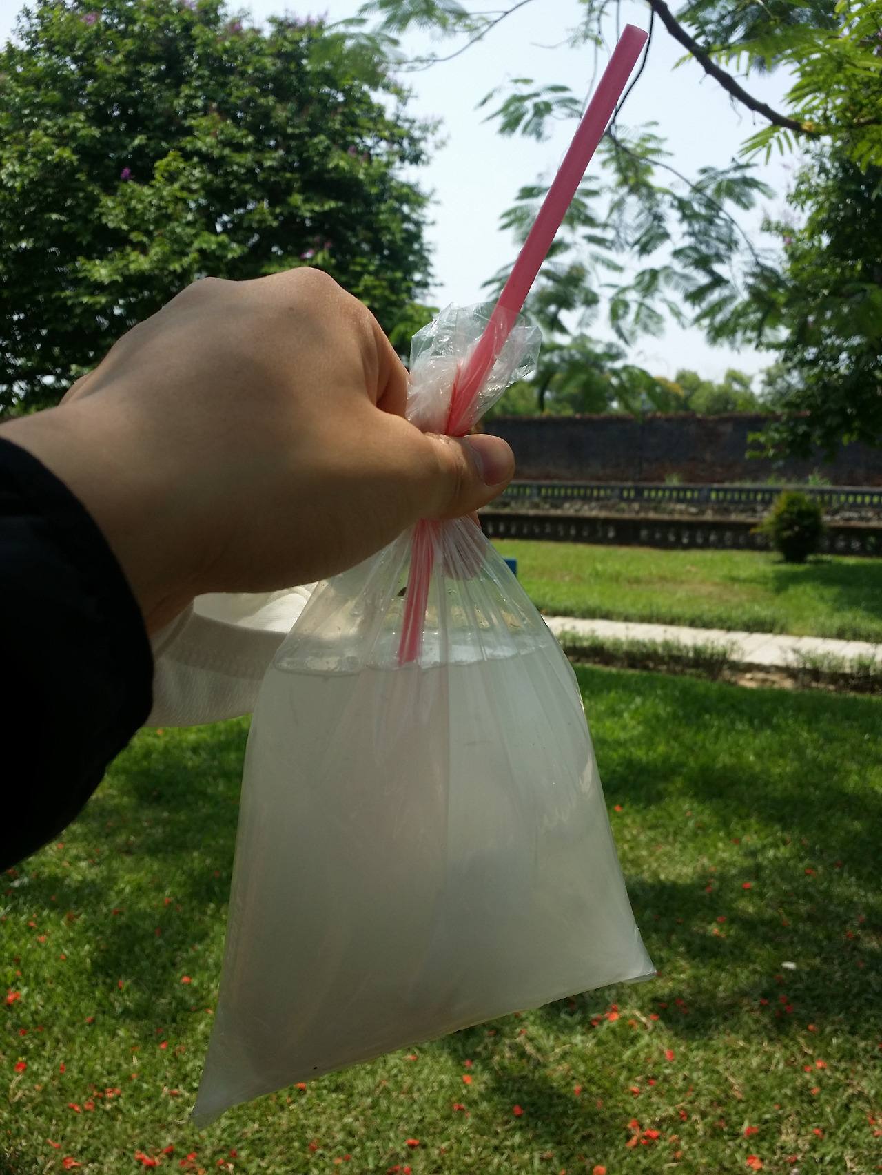 여기 아저씨는 코코넛 속을 수저로 긁어서 봉지에 코코넛 물과 함께 넣어주셨다.