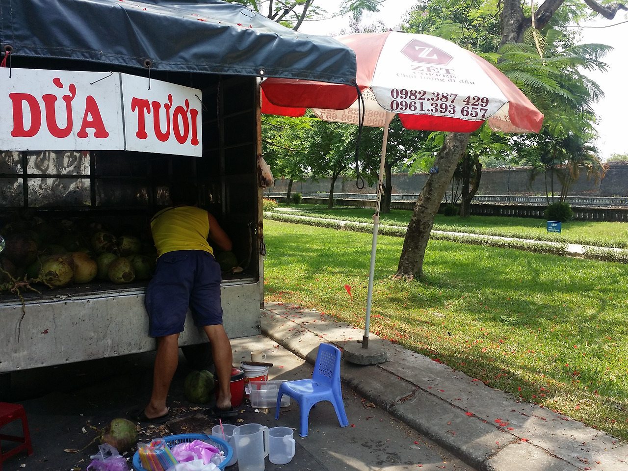 길을 가다보니 저 앞에 코코넛을 파는 아저씨가 있다.