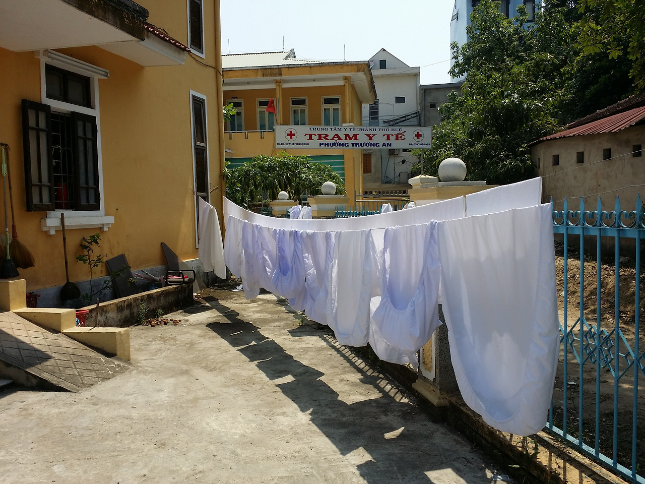 밖에 나와보니 빨아둔 침대보와 베갯잇이 보인다.