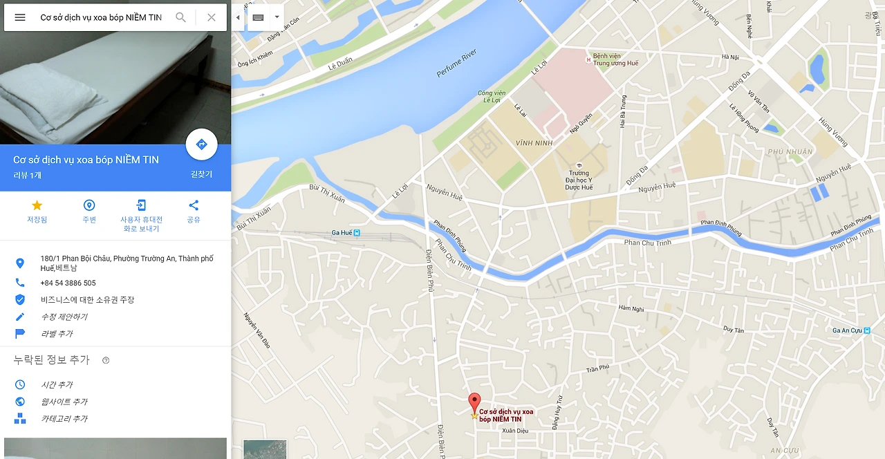주소가 180/1 Phan Bội Châu, Phường Trường An, Thành phố Huế 요건데 180번지에서 골목 안으로 들어가 180/1을 찾으라는 의미다.