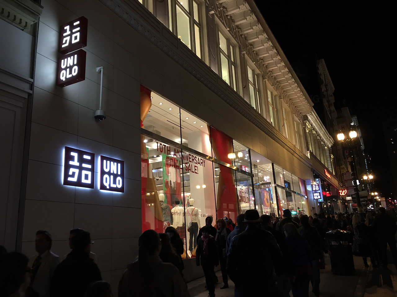 그래서 저 앞에 보이는 유니클로에 들어가 후드를 하나 샀다.