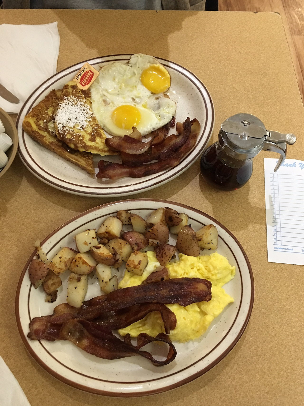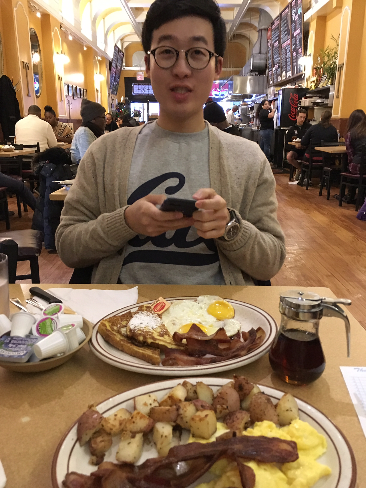 베이글, 계란, 감자, 토스트가 있는 메뉴를 주문했다.