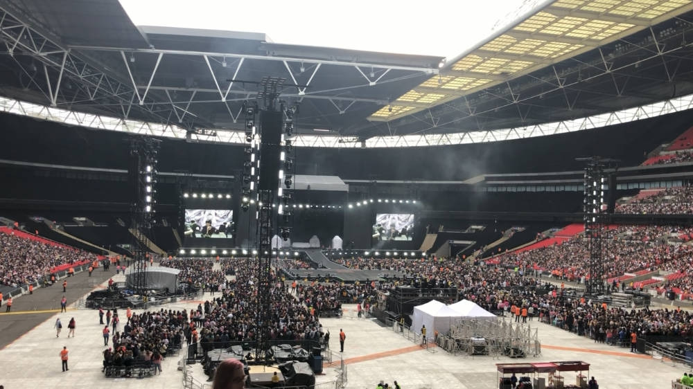 나는 1층에서 무대 중앙을 바라보는 좌석이었는데 사실상 2층에 가까웠다. 웸블리는 9만 석 규모의 경기장이기 때문에 사람을 가까이 보는 것은 바라지도 않았고 무대와 전광판이라도 잘 보이길 바랐다. 현장에 있는 것 자체가 의미 있었고 두근거렸다.