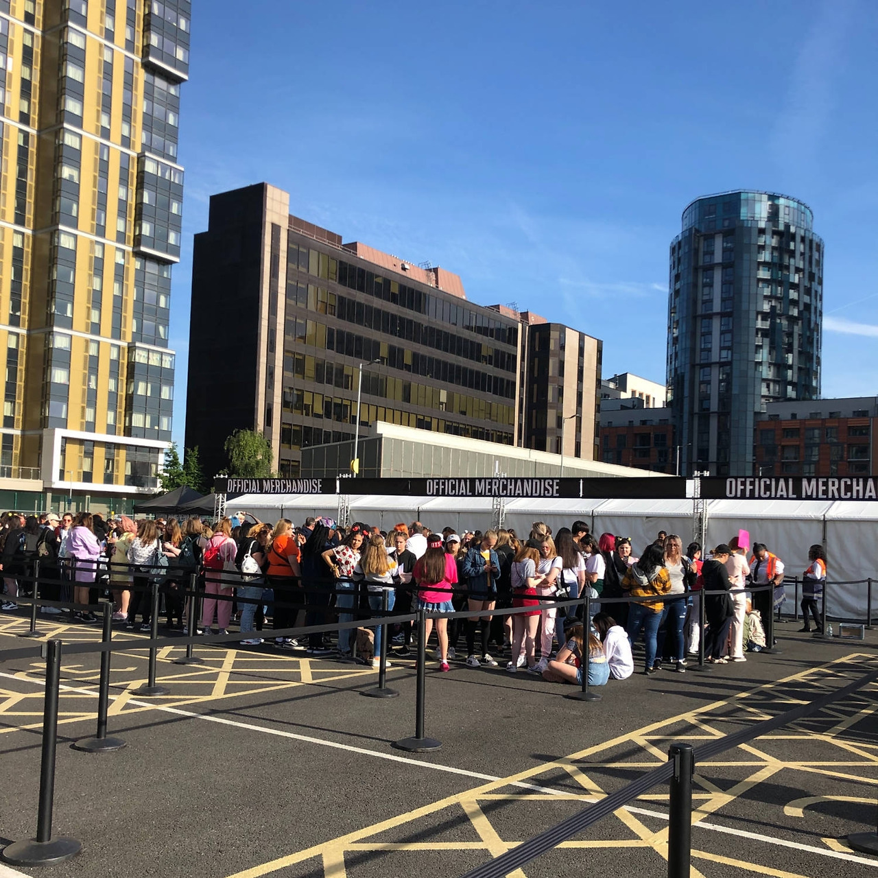 나는 공연보다 이틀 먼저 런던에 가서 토요일(공연 첫째날) 아침에 굿즈를 사러 갔다. 작년에 O2 공연장에서 굿즈를 사는 것이 너무 힘들었던 경험이 있고, 이번에는 숙소가 웸블리랑 멀어서 왕복도 쉽지 않았다. 스톡홀름에서 런던까지 비행기로 두시간반이 걸린다. 공연 전날이 아니라 이틀 전에 간 것은 오로지 굿즈를 미리 안전하게 사기 위해서였다.