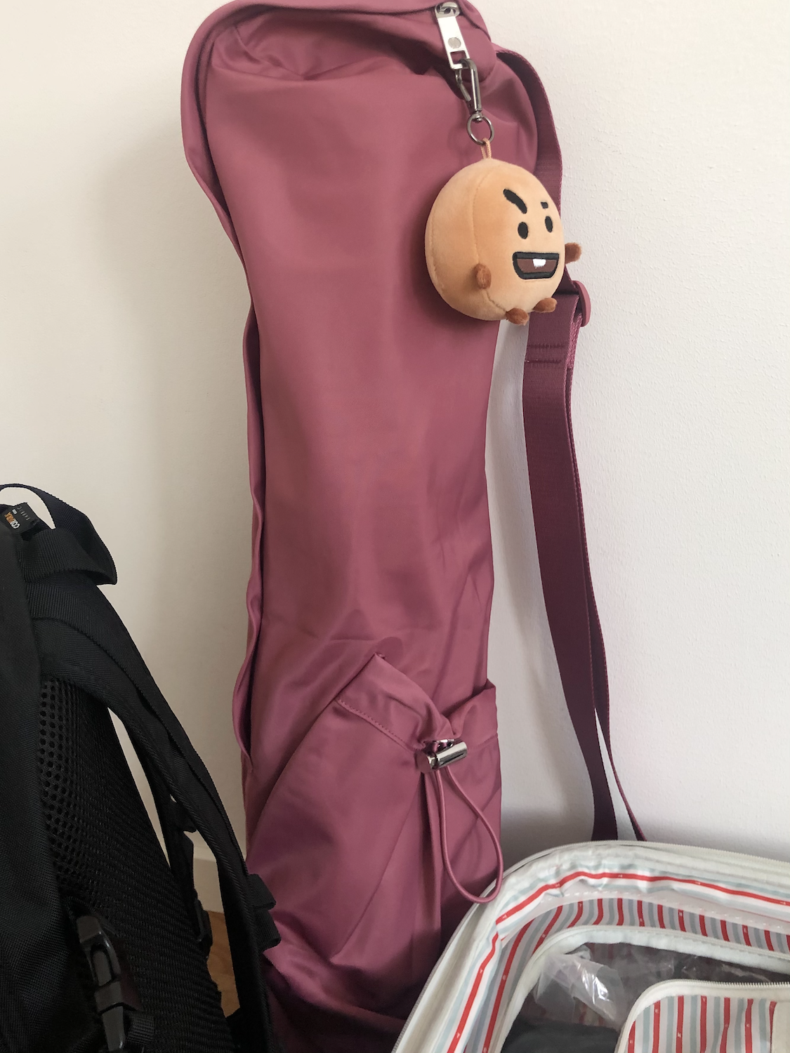 매트는 보통 한 군데 놓고 쓰지만 어쩌다 들고 다닐 일이 생기면 각오를 해야 한다. 3kg에 육박하는 매트와 최소한의 요가 짐(옷, 작은 수건, 끝나고 필요한 화장품 등)을 드는 것은, 2kg에 가까운 맥북 프로를 하루 종일 들고 다니는데 단련된 내게도 쉽지 않다. 심지어 매트는 한쪽 어깨로만 들어야 하는 구조 때문에 잠깐만 서있어도 순식간에 피곤해지는 것 같다. 왜 매트용 가방은 전부 크로스인걸까!