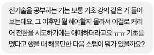 저는 이 질문을 읽으면서 우리가 흔히 말하는 ‘공부’가 진짜 무슨 의미인지 생각해봤어요. 그게 책을 한 두권 보거나 코스 하나를 듣는 거라면 그 정도는 올해 상반기에 쉽게 하실 것 같거든요. 그렇게 하나하나 도장깨기를 해도 되는데, 사람 마음이 신기하게 도장 하나를 깨는 동안 아직 깨지 못한 도장에 자꾸 눈이 가고 초조해지고 뭐 그렇더라고요. 이렇게 계속 왔다 갔다 하다 보면 어느샌가 전부에 익숙해진 상태가 되어있을 거예요.