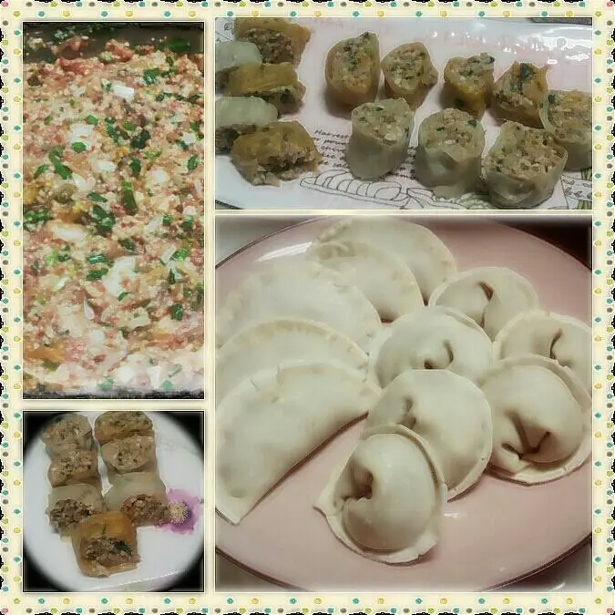 김치는 국물을 없앤 다음 최대한 쫑쫑 썰고, 불린 당면과 부추, 살짝 데친 숙주도 김치의 크기와 비슷하게 쫑쫑 썰어 놓는다. 거대한 면포에다가 시장에서 사 온 두부 열 모쯤을 넣고 꽉꽉 눌러짜 물기를 제거한다. 시장 육수 간에서 다져온 돼지고기도 핏물을 제거해 준비해둔다. 김치를 꺼내왔던 대야보다 두배는 더 큰 다라이에 이 모든 재료들을 넣은 다음 맛소금과 후추, 약간의 참기름을 넣어 간을 맞춘다.
