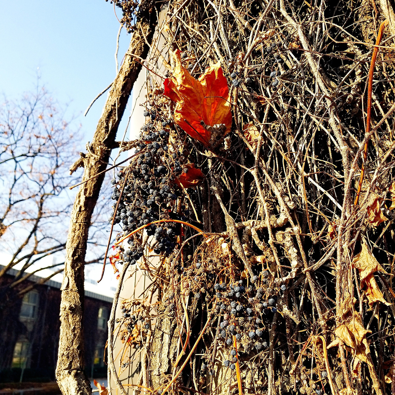 바싹 마른 담쟁이덩굴은 벌써, 다가올 봄을 준비하며