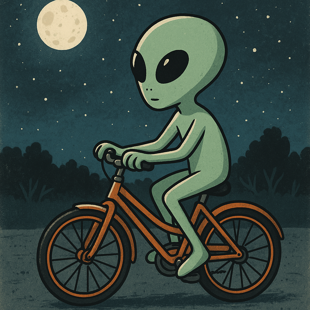 문제는, 내 앞바구니에는 ET도 꼬마도 없다는 것이다. 대신 오늘 장보기 목록이 있다. 상추 한 봉지, 달걀 한 판, 두부 두 모, 그리고 할인하던 귤 한 봉지. 상추가 ET 자리를 차지한 셈인데, 상추라도 좋다. 어차피 달빛 아래서 보면 모든 생명체는 어느 정도 비슷해진다.