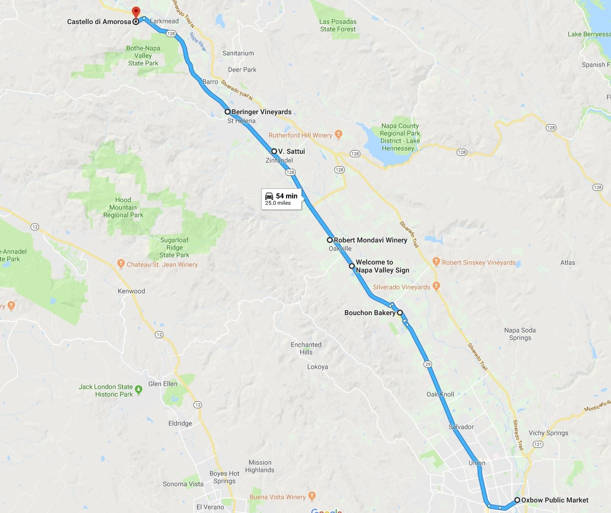 마지막으로 내가 강추하는 나파 여행 당일치기 관광 코스를 공개하기로 한다. 사실은 그다지 특별한 것은 아니고 전부 워낙 유명한 곳들이라서 많은 관광객들이 찾는 곳들이다. 그래도 이 순서대로 이동하면 29번 국도 한길로만 쭉 올라가면 되고 일직선으로 길이가 총 25마일 밖에 되지 않아(약 40km) 동선 낭비 없이 아주 꽉 찬 하루를 보낼 수 있다. 주의할 점이 있다면, 와이너리들이 보통 4-5시면 영업을 종료하기 때문에 시간을 잘 배분해야 한다. 시간을 어떻게 쓰느냐에 따라서 하루에 네 군데를 다가 보기는 좀 무리일 수도 있는데 이중에 두세 군데만 골라서 집중 투어/테이스팅을 즐기며 여유롭게 보내는 것이 좋은 것 같다.