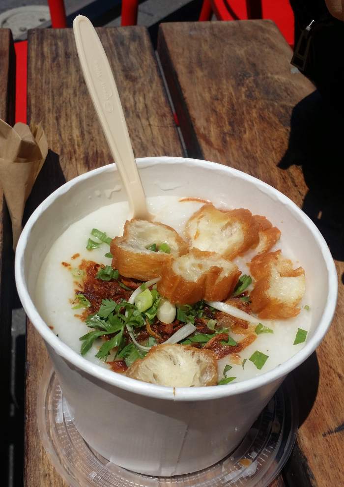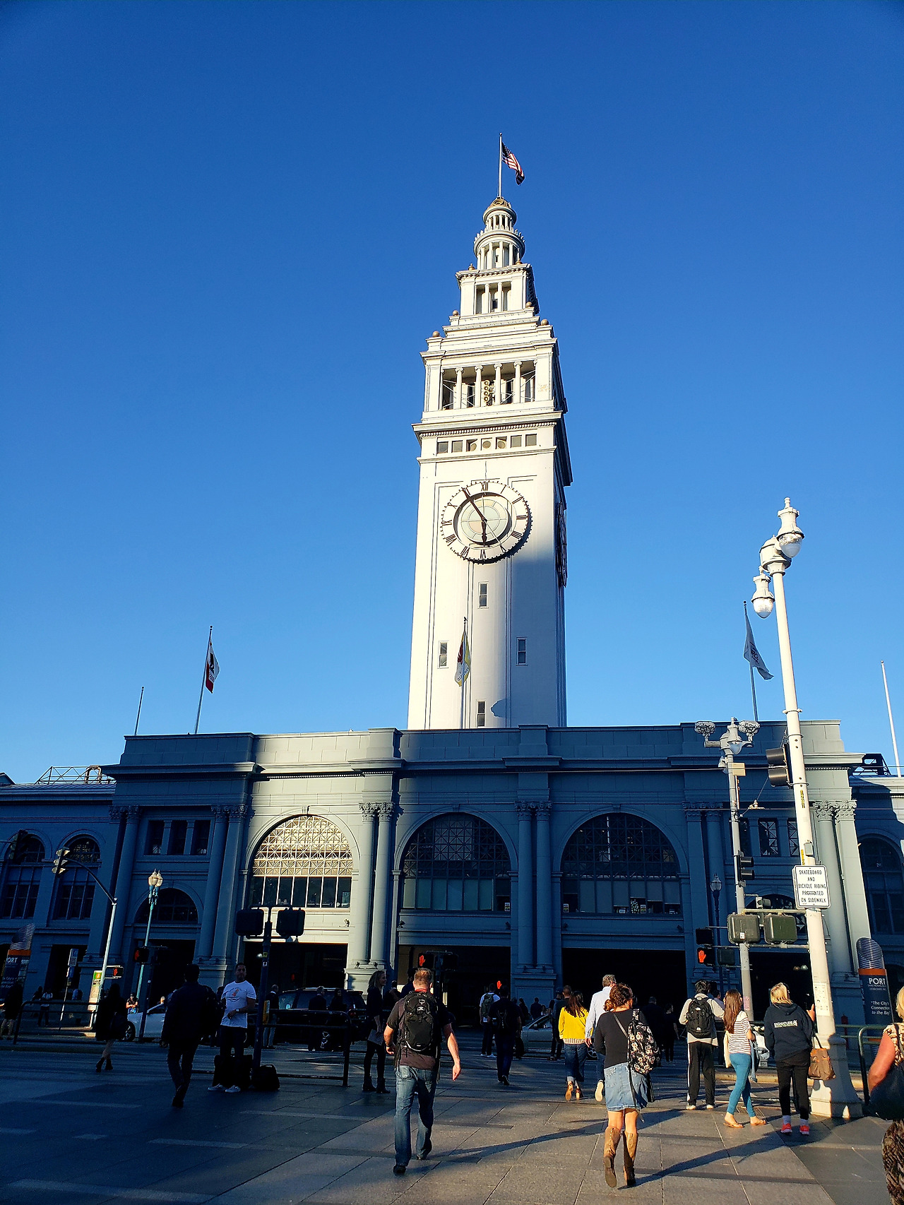 회사가 위치한 지역이 파이낸셜 디스트릭트 (Financial district)의 엠바카데로 지역이기에 우리의 일정은 여기서 시작했다. 회사 건물에 주차해놓은 차에 친구의 짐들을 실어 놓은 뒤 걸어서 5분 거리의 페리 빌딩 (Ferry building)으로 걸음을 향했다. 페리 빌딩은 각종 식당들과 마켓들이 모여있는 건물인데 뒤편 바다에서 페리 보트를 타고 출퇴근을 하거나 이동하는 사람들, 그리고 먹거리를 위해 찾는 사람들과 관광객들로 항상 붐비는 곳이다. 매주 주말에 각종 유기농 야채와 과일들을 파는 파머스 마켓 (Farmer’s market)도 열리고 또 빌딩 안에는 서로 별다른 관련은 없는 많은 가게들이 자리하고 있다. 수제 비누가게같은 파는 곳도 있고 와인가게, 정육점, 초콜릿가게 등 많은 물건들을 파는데 딱히 싼 물건은 없어서 뭘 사본 기억은 없다. 이곳은 내가 주로 회사 점심시간에 밥을 사러 오는 곳인데 'Out the door' 라는 베트남 음식점에 파는 닭죽이 엄청 맛있다! 베트남식 Chicken rice porridge 인데 한국사람 입맛에 엄청 잘 맞아서 한번씩 속이 부대끼거나 소화가 잘 안되는 날 찾곤 한다.