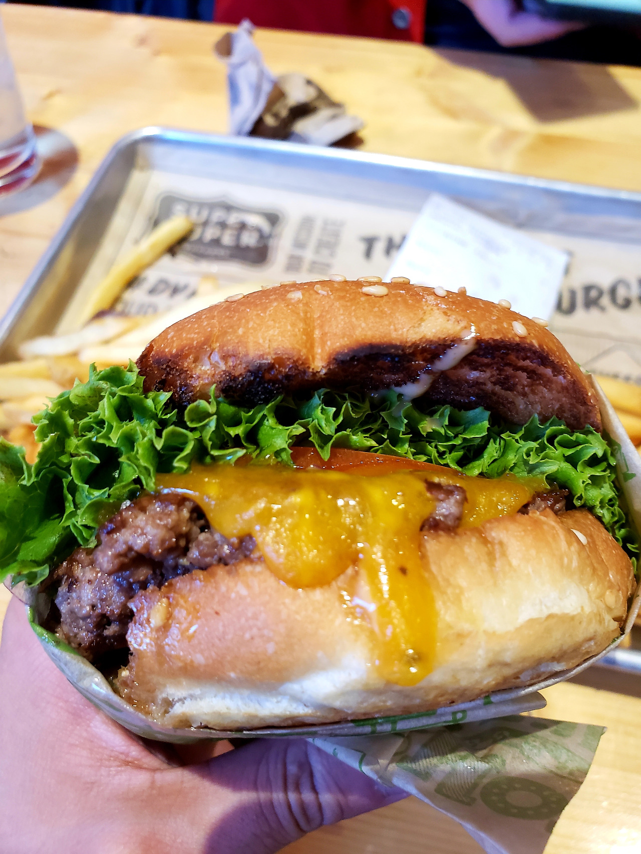 Pier 14는 바닷가쪽으로 길이 길게 쭉 나있어서 길 끝에서면 샌프란시스코의 전경과 베이 브릿지의 모습이 너무 아름답게 펼쳐진다. 이 곳은 관광객들이 많이 찾지 않는 로컬의 명소인데 날씨 좋은 날 산책하기가 너무 좋고 사진이 정말 예쁘게 나온다. 실제 모습보다도 어쩌면 사진빨이 더 잘 받는 곳이다. 친구와 이곳을 걸으면서 커피를 마무리 하고 Cupid’s span 조형물로 데려갔다. 이곳에 관광오는 사람들을 데려가는 이유는 단 한가지이다. 역시 사진이 너무 예쁘게 나온다는 점이다. 관광에서 사진의 중요성은 아무리 강조해도 부족하다. 감성이 메마른 친구놈은 별다른 멘트를 하지 않았지만 강제로 포즈를 잡게해 몇 컷 찍어 주었다. 됐다더니 결과물을 보며 만족해하는 녀석의 모습을 보니 죽빵을 안겨 주고 싶었지만 슬슬 배가 고파져서 꾸준히 이곳에서 로컬들에게 사랑받는 수퍼두퍼 버거집으로 향했다.
