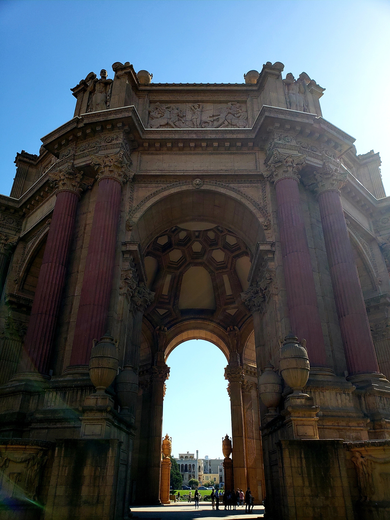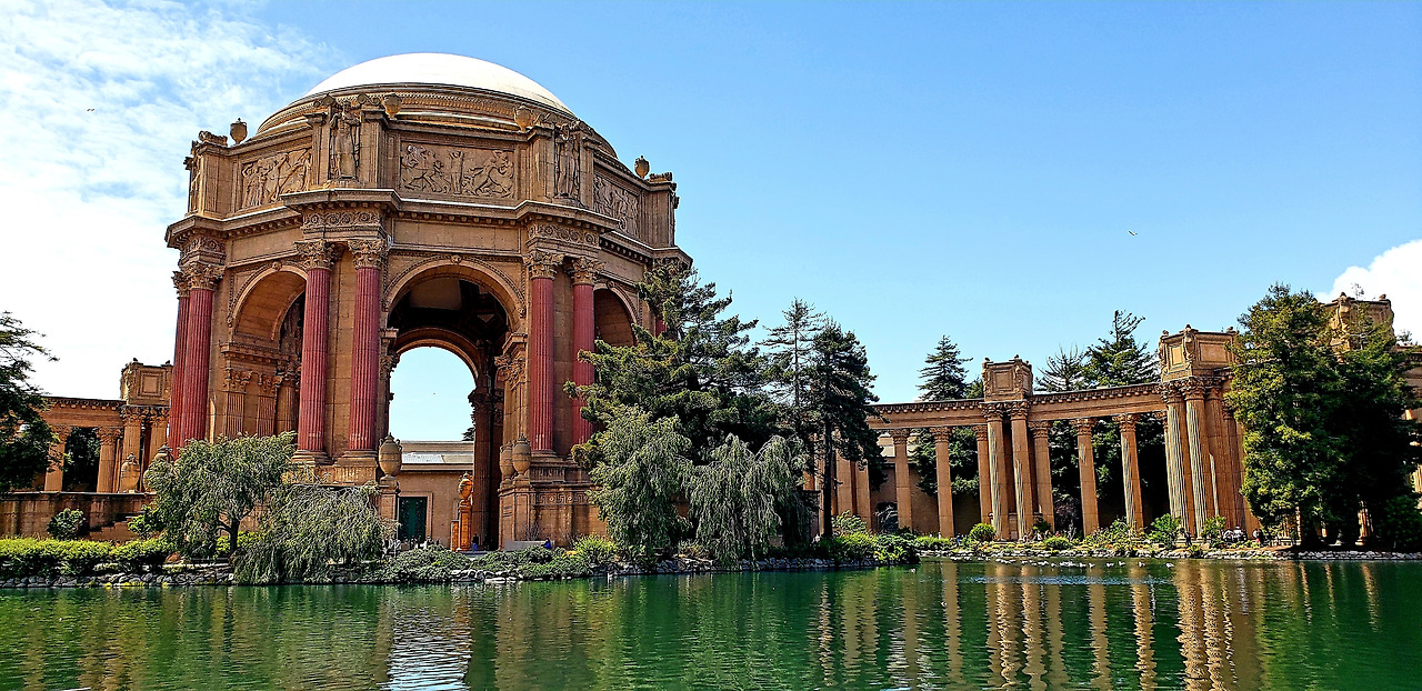 이동 경로상 금문교를 건너 다시 샌프란 시내로 들어오게 되면 바로 처음 왼쪽에 마주하게 되는 것이 Palace of Fine Arts이다. 이곳은 주로 예술품 전시나 각종 공연을 위해 사용되는데 사실 많은 방문에도 여태껏 안에는 한 번도 들어가 본 적이 없다. 독특한 로마 그리스 양식의 건물과 주위 경관이 너무 예쁘고 호수 잔디밭이 넓게 펼쳐져 있어, 현지인들이 나들이나 웨딩 촬영 장소로 사랑받는 곳이다. (Fun fact – 조금 오래돼서 아재들만 알법한 영화이지만 이 궁전은 The Rock (드웨인 존슨 아님)이라는 1996년작 영화에서 나온 걸로도 유명한데 트랜스포머로도 유명한 마이클 베이 감독의 데뷔작인데 상당히 히트했었다. 그리고 궁전 바로 길 건너편에는 루카스필름 (Lucasfilm)의 본사가 위치하고 있어서 스타워즈 덕후라면 잠시 방문해서 요다 동상과 본사 로비를 방문해보는 것도 뜻깊은 일일 것이다.)